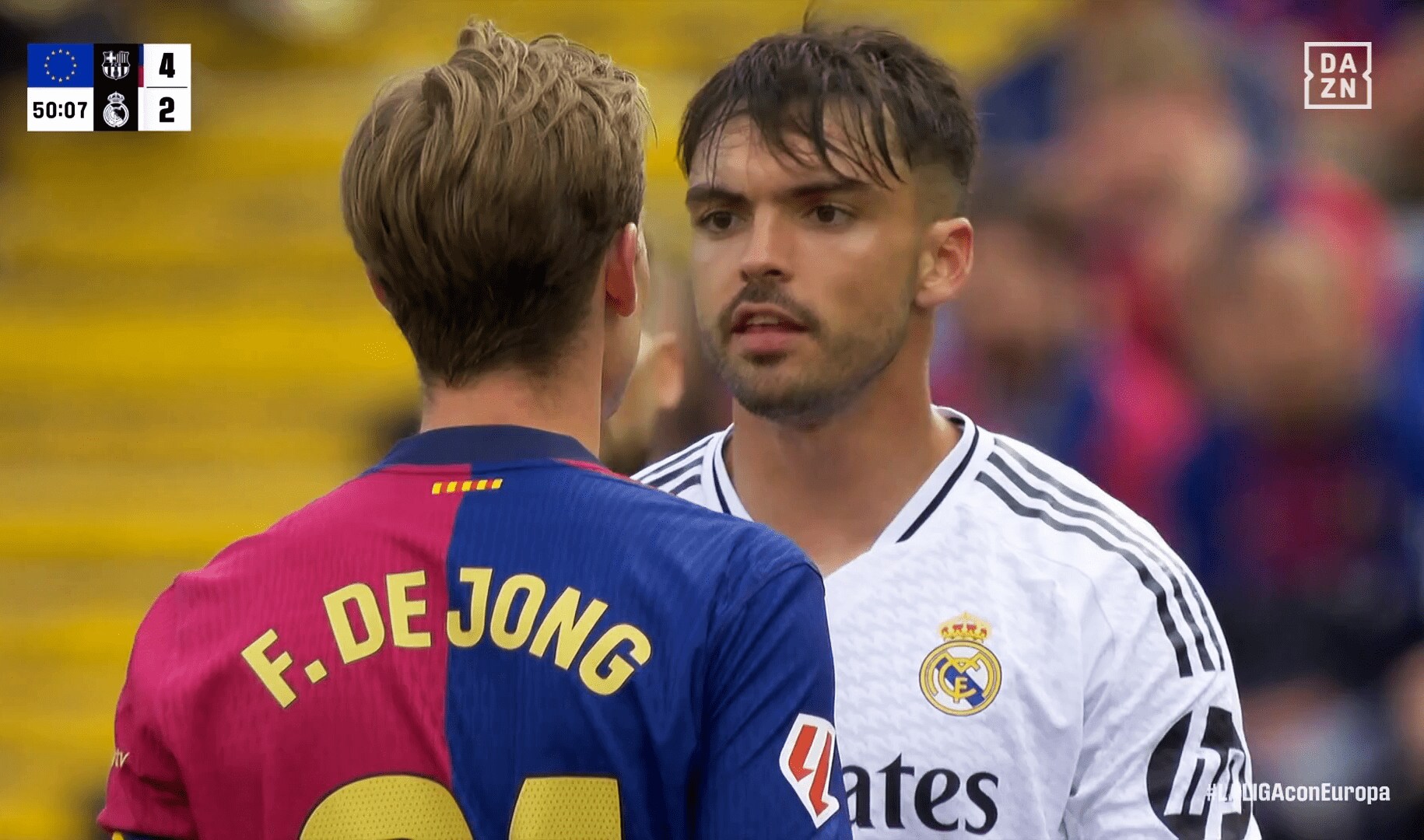 一触即発となった。レアル・マドリードのDFラウル・アセンシオがバルセロナのFWフェラン・トーレスの足を後方から思い切り蹴りつけると、さすがにバルセロナの選手たちは黙ってはいなかった。