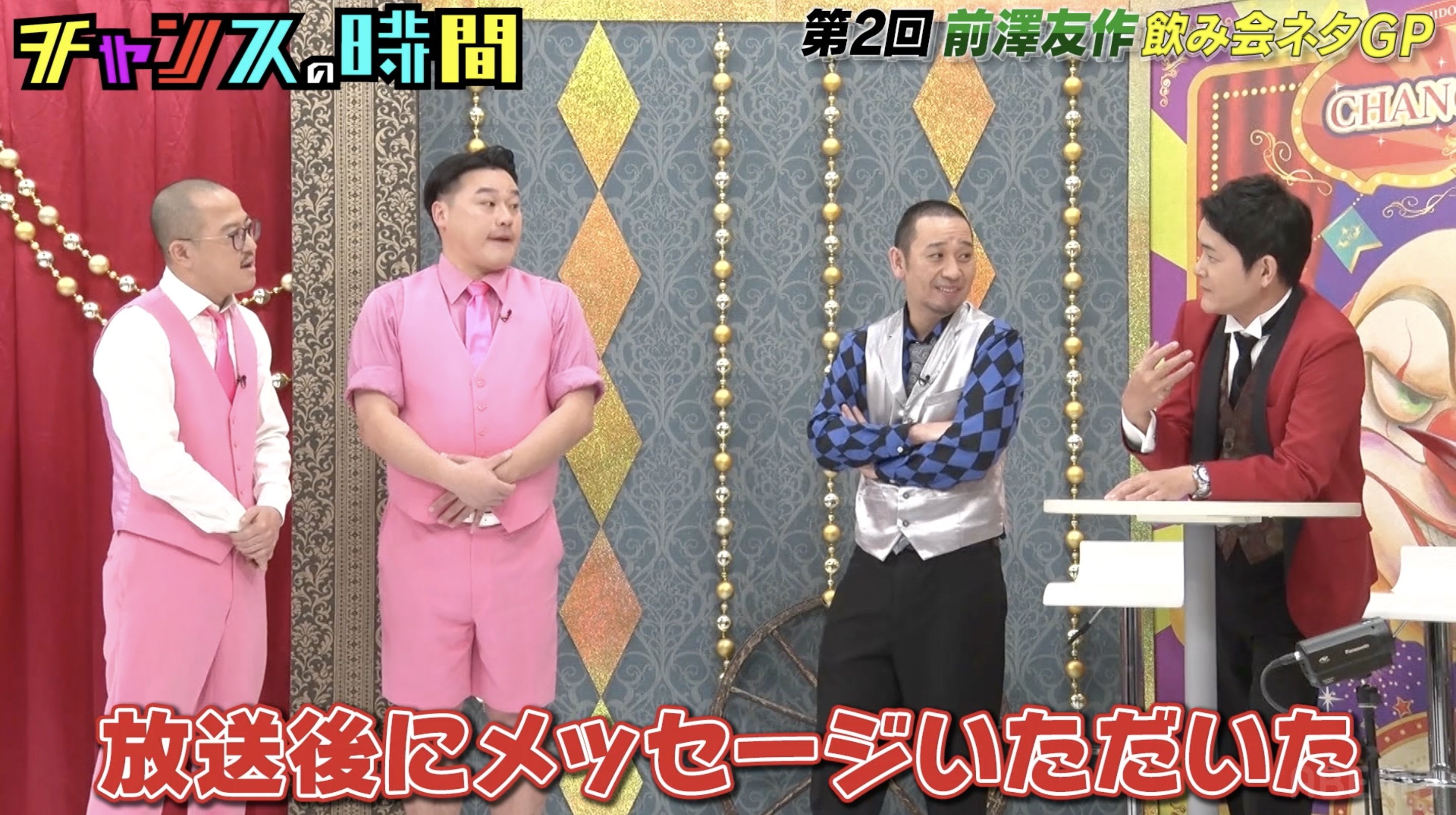 芸人として生きていくうえで、社長との飲み会でのネタ披露は避けては通れないイベントである。そのとき社長にハマるネタを持っていれば、さらなる人脈を手にするチャンスをゲットできる。そこで今回は、社長界の最高峰である前澤友作氏にハマるための飲み会ネタを披露するネタバトル企画「第2回 前澤友作 飲み会ネタグランプリ」が開催された。審査員として、前澤氏にハマっているというちゃんぴおんず(日本一おもしろい大崎、大ちゃん)が登場した。