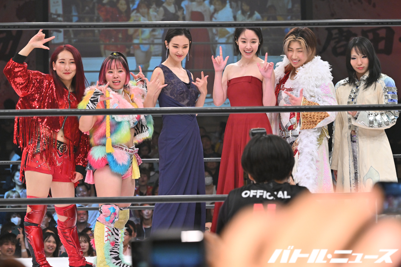 最後にはゆりやんの呼びかけにより、サプライズでレジェンド選手&OGたちがリングに上がり、キャストと一緒に記念撮影。イベントは大団円を迎えた。