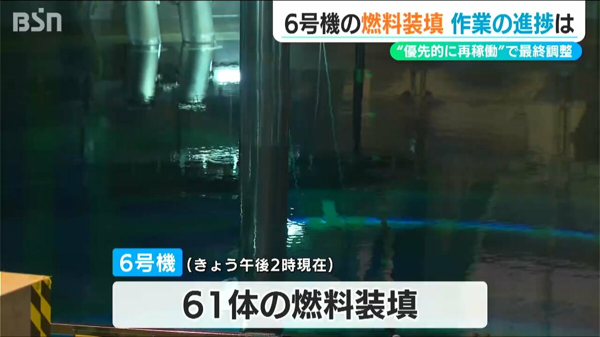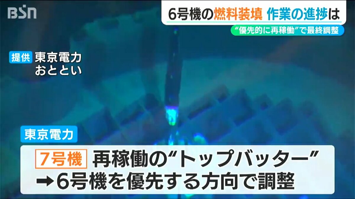 【記者リポート】「現場では作業員が目視で確認しながら燃料の装填を進めています。作業が不具合なく進めば8月にも、6号機も技術的には再稼働ができる状態になるということです」