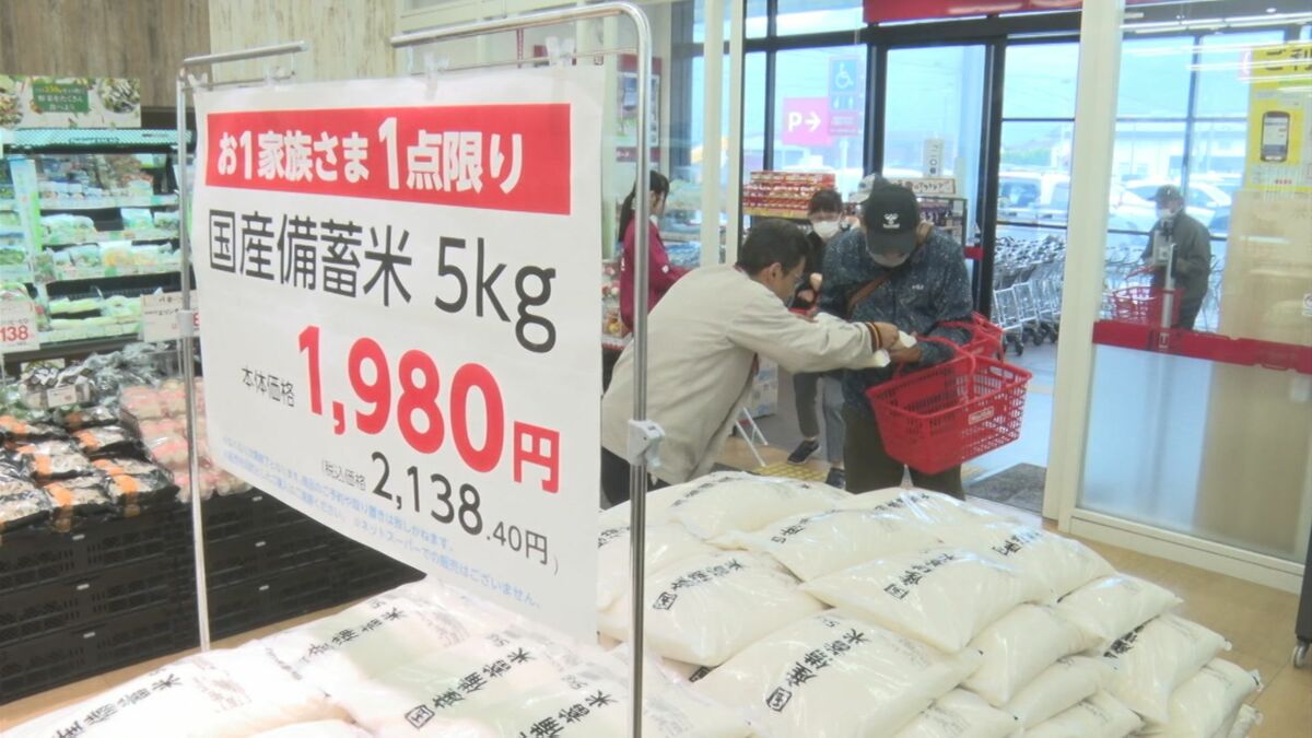 この店では、2022年産の古古米が5キロ・税込み2138円で500袋が準備され、1家族1袋ずつ手渡されていきました。
