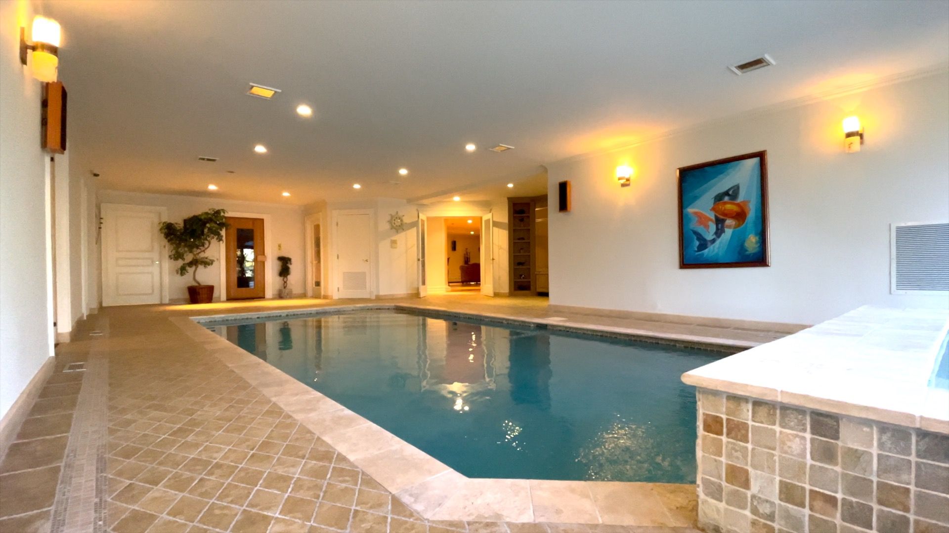 部屋の中にプールが併設されている海外豪邸(YouTubeチャンネル『 ゆっくり不動産 』より)