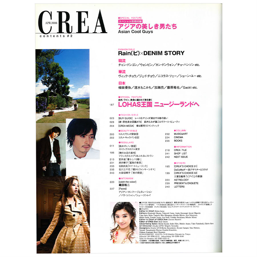 そして、時代を代表する国内外のスターのポートレートに、アジアンリゾートやひとり温泉、贈りものバイブルなどCREA人気の特集テーマ。