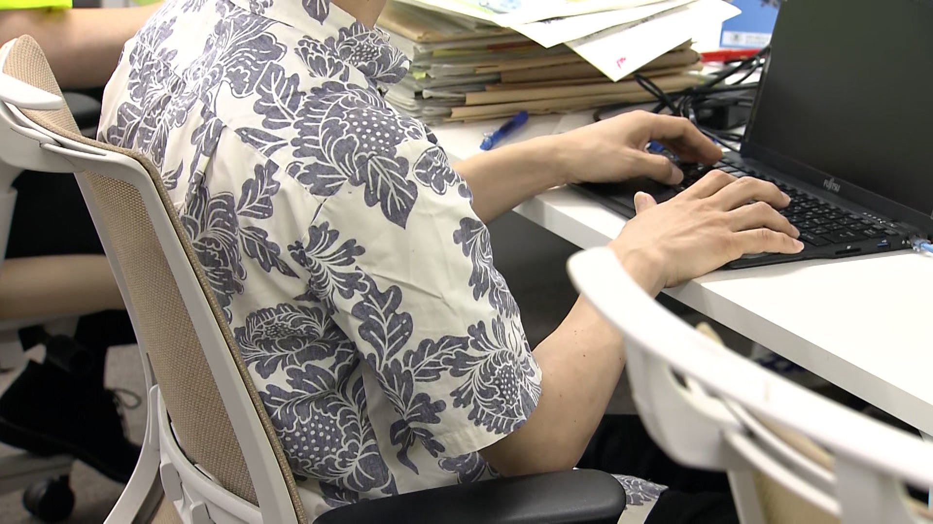 省内では、職員がアロハシャツなどを着て仕事をする姿も見られました。