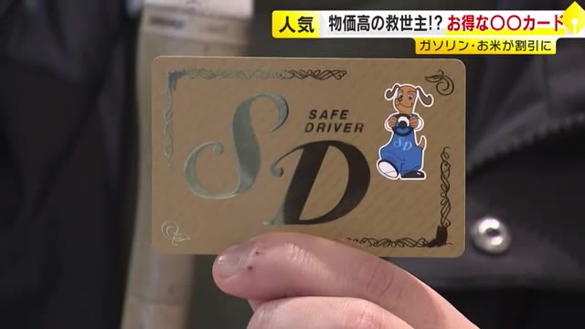 メモリーカードではないほうの「SDカード」、それは「無事故・無違反」の安全運転者(Safe・Driver)の証だ。ハンドルを持った犬のイラストがあしらわれている。1年以上無事故・無違反の人なら自動車安全運転センターで誰でも受け取れる。発行には670円かかるが、カードの提示で日本全国のさまざまな店でお得な割引サービスを受けることができ、自動車安全運転センターの花田諭課長は「米とかも高い中で、割引は消費者の方が気にされるところ。ショッピング関係とか、あとガスリンスタンドとか、飲食店とかいろんなところで使える」と話す。