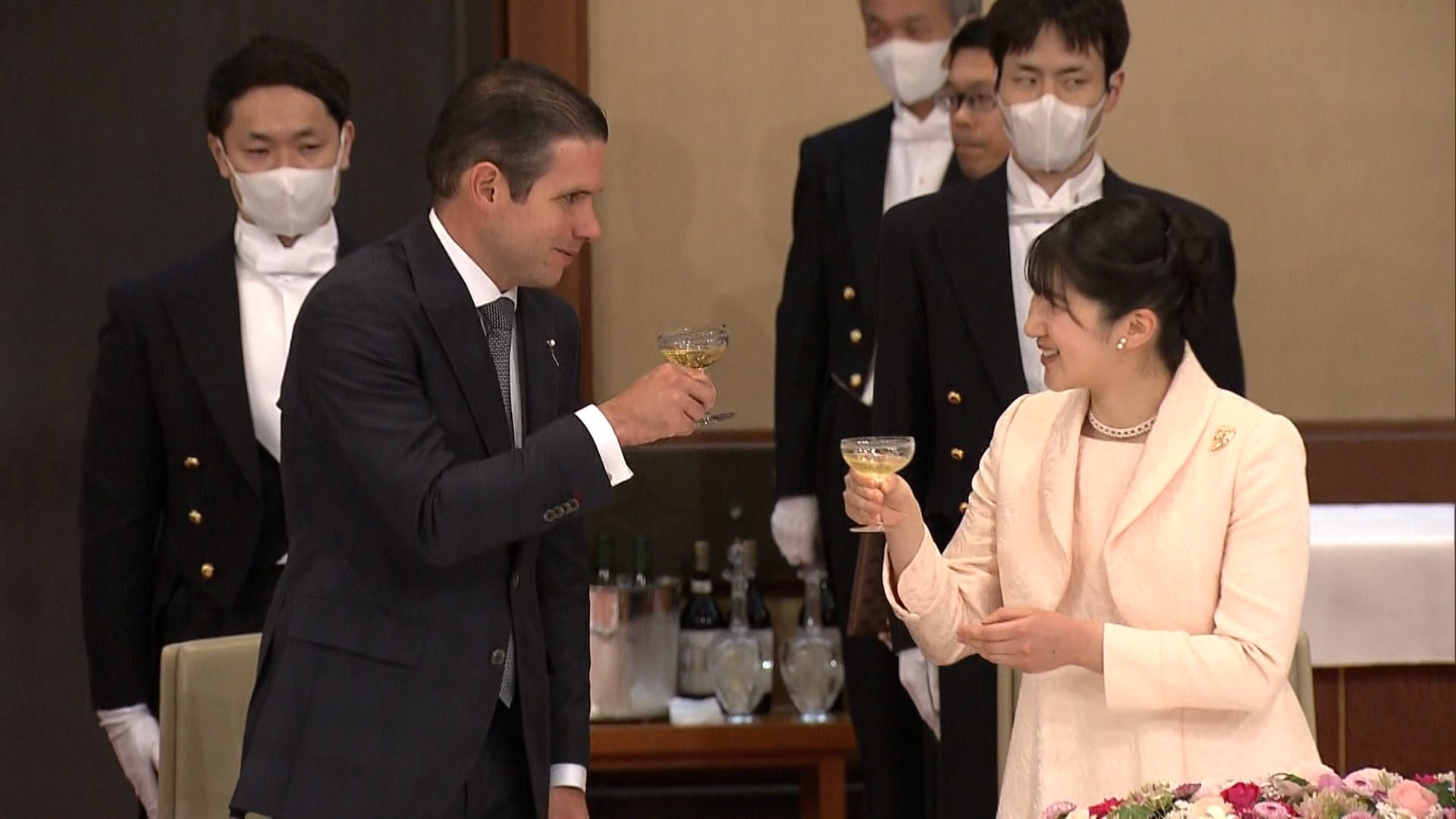 陛下のおことばの間はじっと身じろぎせずに耳を傾け、シャンパンが注がれたグラスを手に乾杯し、隣に座ったブラジルの下院議長と通訳を交え、笑顔で歓談されました。