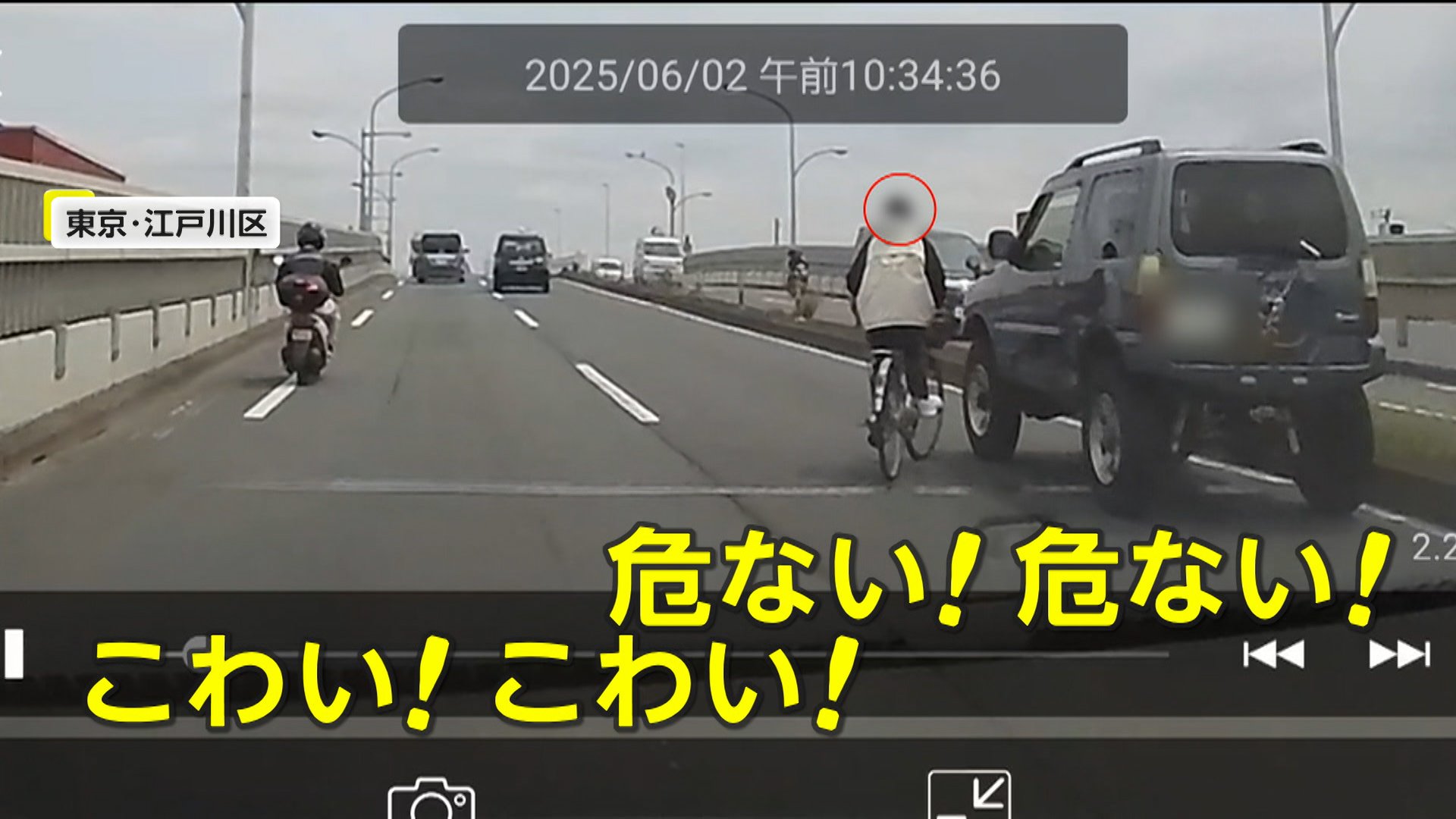 東京・江戸川区で目撃されたのは、なぜか車道の真ん中を走る自転車。