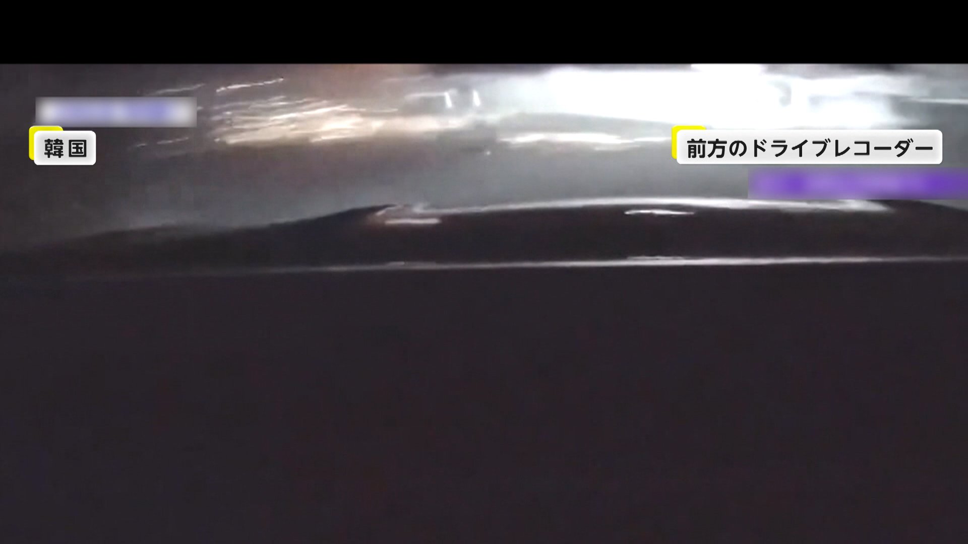 前方のドライブレコーダーでは、事故の瞬間の大きな衝撃とともに追突してきた車が火花を散らして走り続ける様子が確認できます。