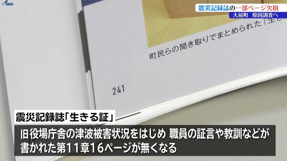 大槌町の震災伝承施設に展示されている震災記録誌の一部のページが欠損していたことが分かりました。破られたあとはなく、町は原因の調査に乗り出しました。