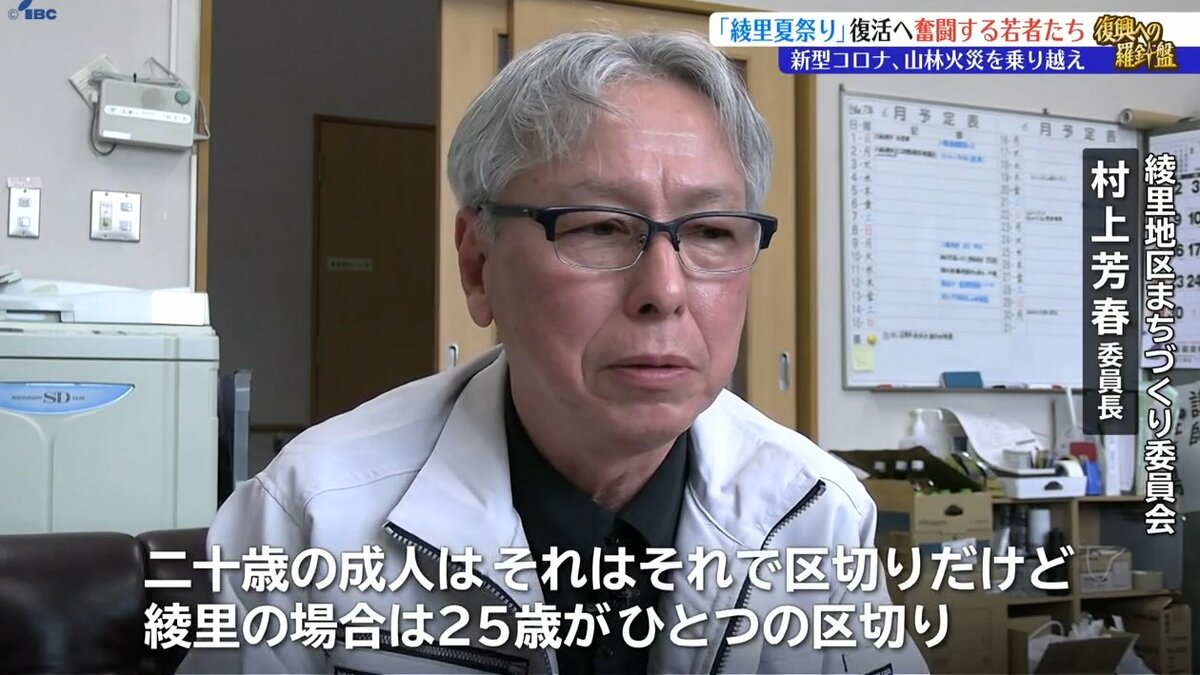 綾里地区まちづくり委員会の村上芳春委員長は、かつて夏祭りの実行委員会のメンバーでした。