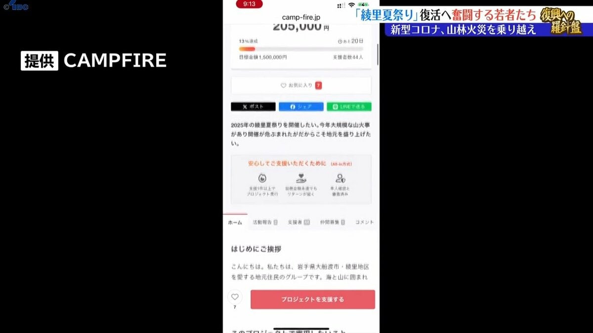 山林火災で大きな被害を受けた大船渡市三陸町綾里地区の若者たちが、伝統の夏祭りを復活させようと奮闘しています。メンバーの中には火災で自宅を失った人も。復興への第一歩として、祭りの復活に取り組む若者たちを取材しました。