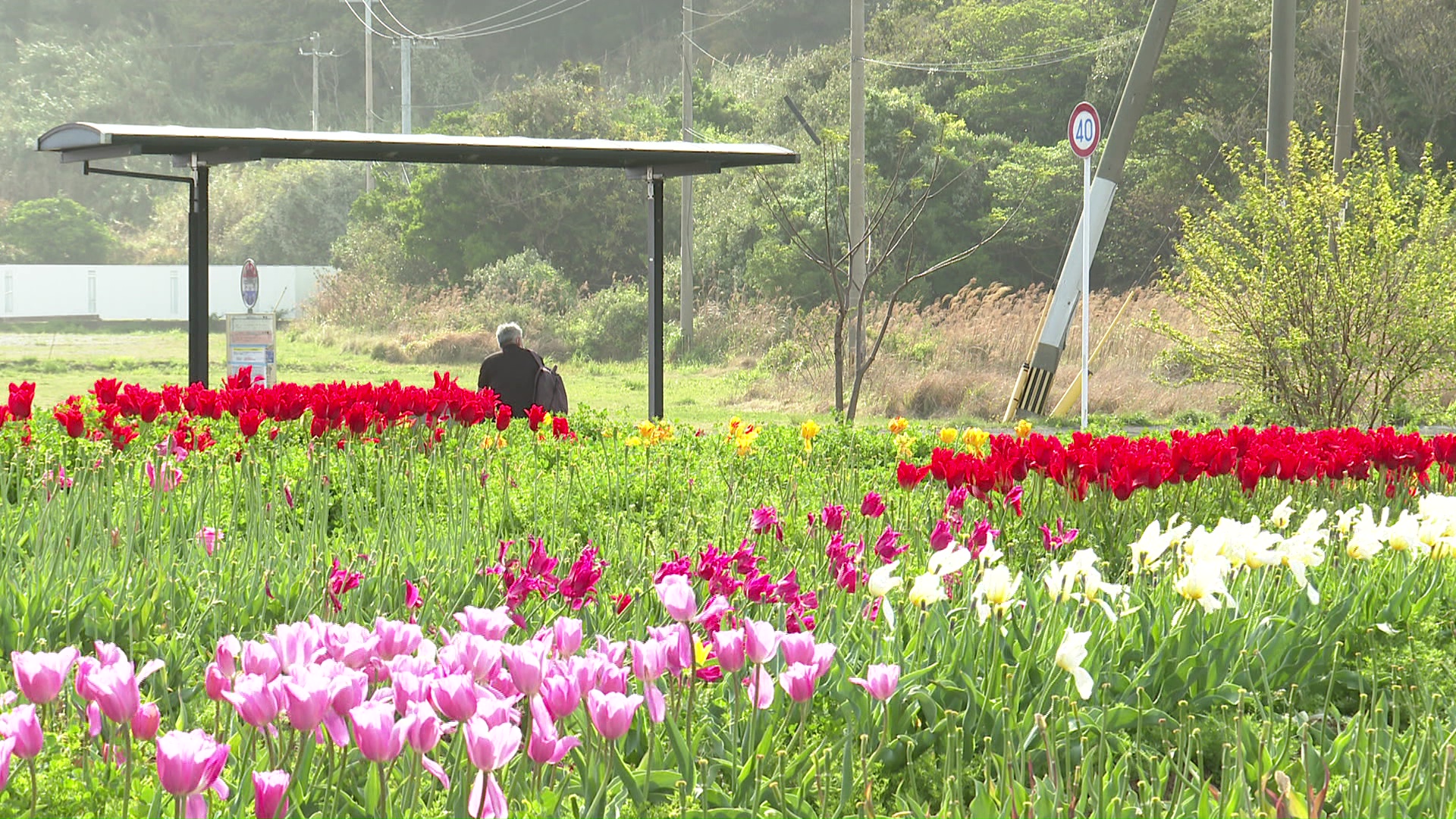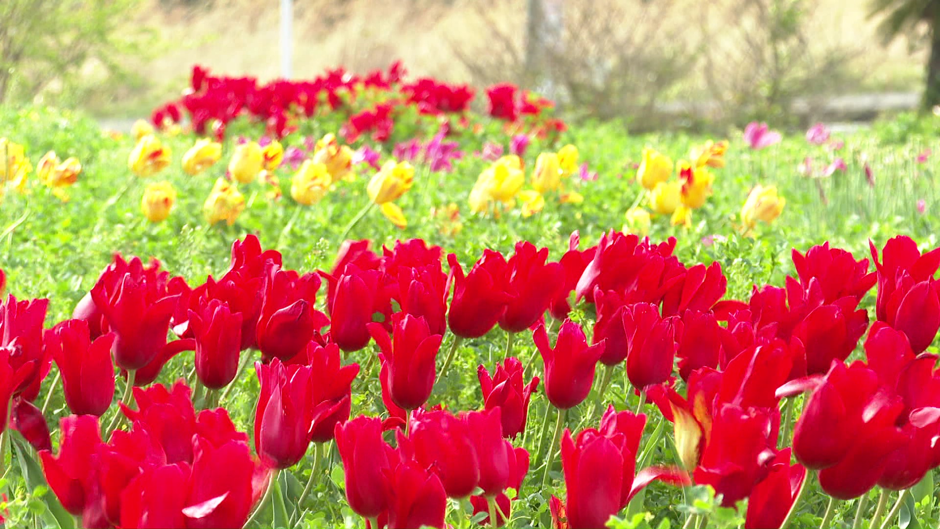 長崎市に咲く色とりどりのチューリップが、人々の目を楽しませています。