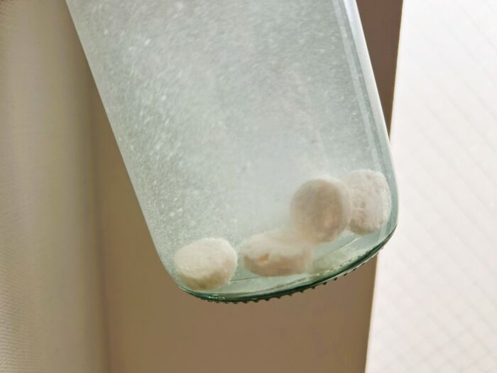 試しに、タブレットをそのままドボンと水に入れると、振ってもなかなか溶けず…。丸2日経っても全部は溶けませんでした(泣)。