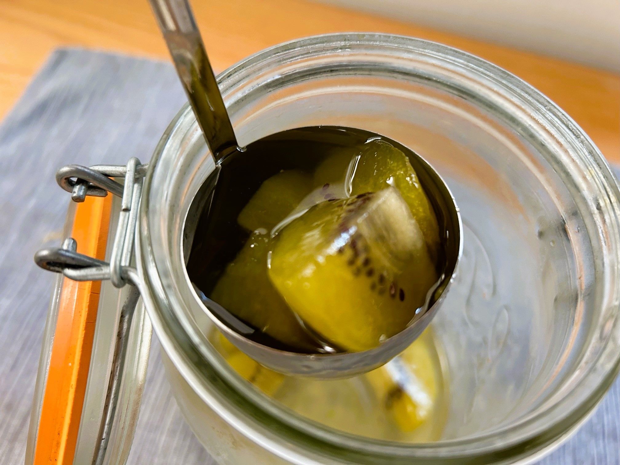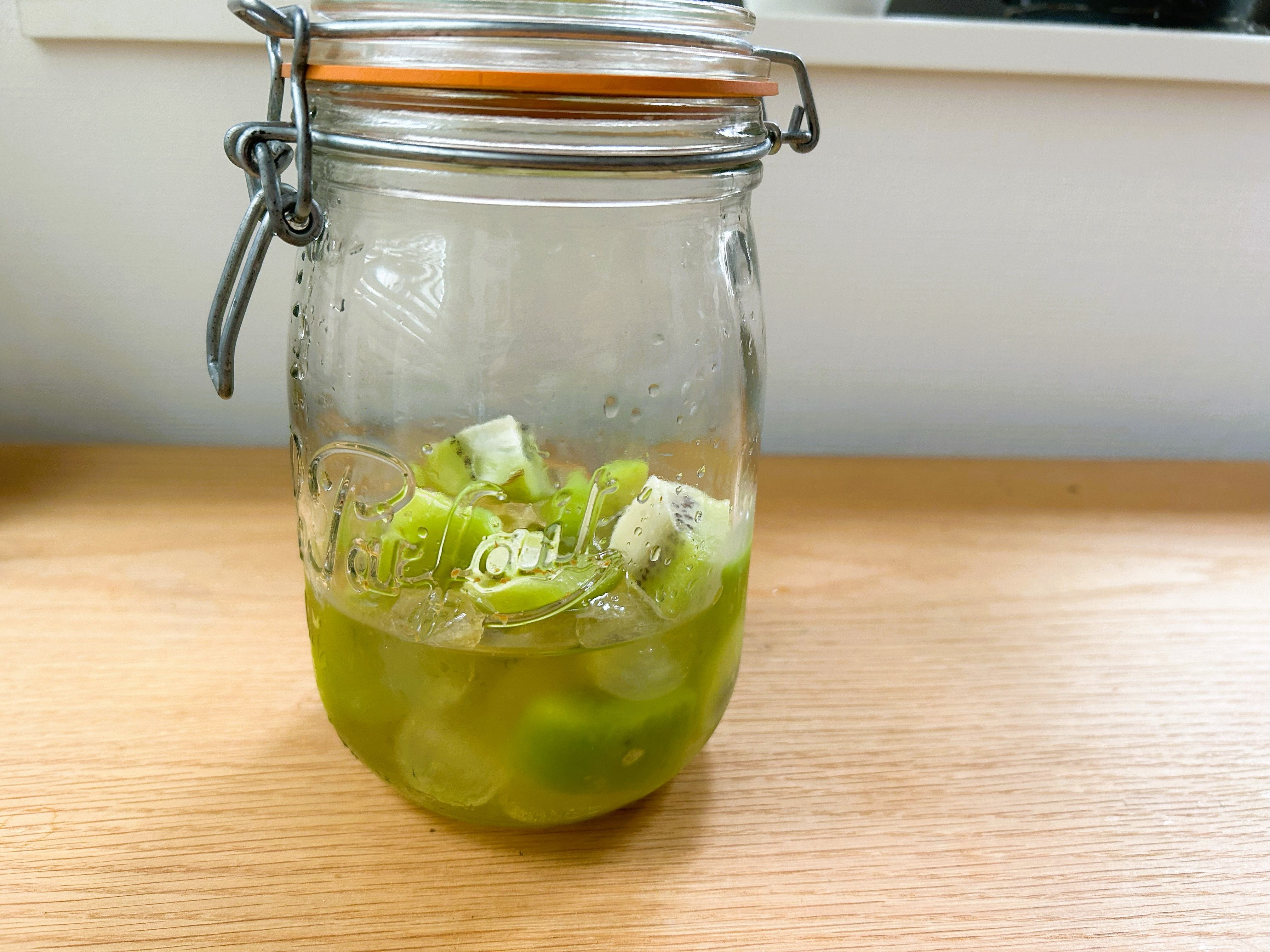 キウイ果実は4日目だとかなり酸っぱかったのですが、14日後(下写真)には甘みもよく染みて食べやすくなりました!