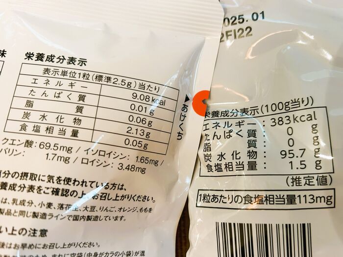 ちなみに、私は塩分を気にするタイプ(笑)。なのですが、1粒で塩分0.1gの塩飴なら、1日5粒くらい食べるなら大丈夫かもと思いました。