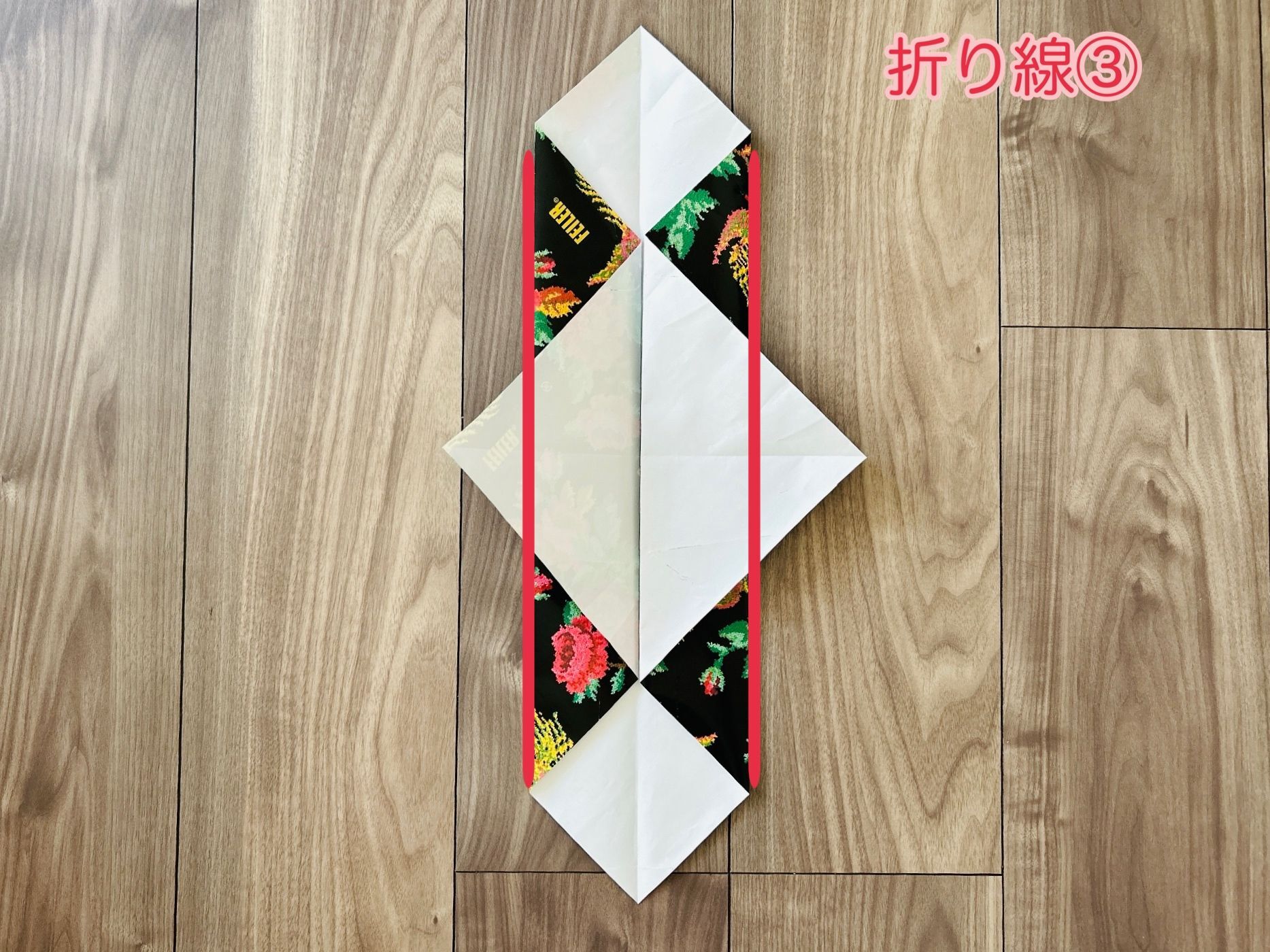 左右どちらも折ります。(折り線③)