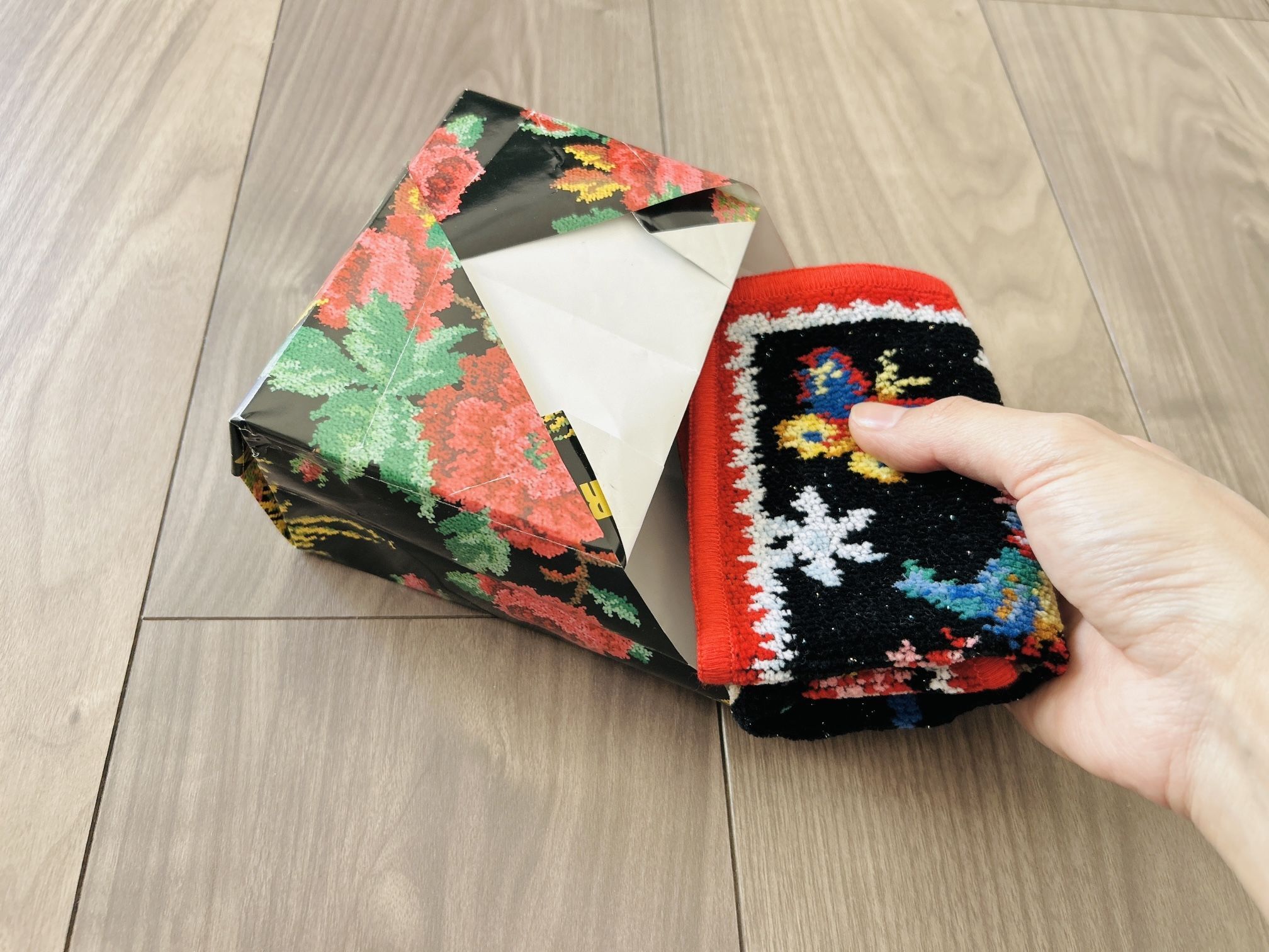 サイズ35×35cmの紙を使用すると、ハンカチタオルを入れるのにちょうどよいサイズ感になります。