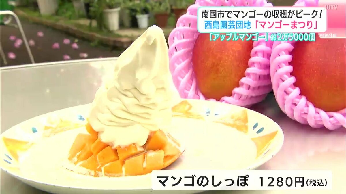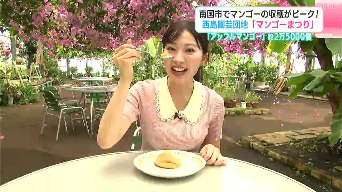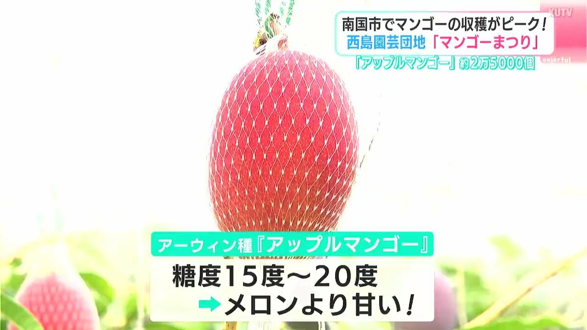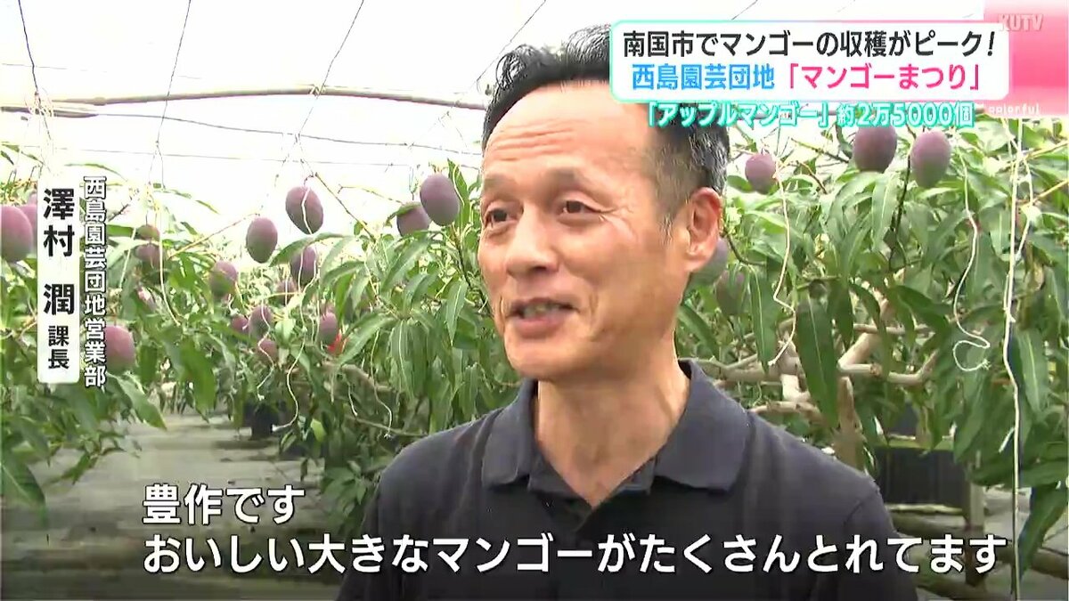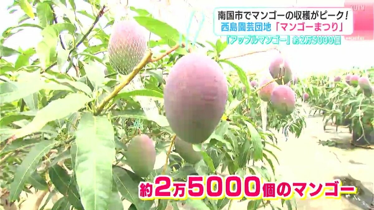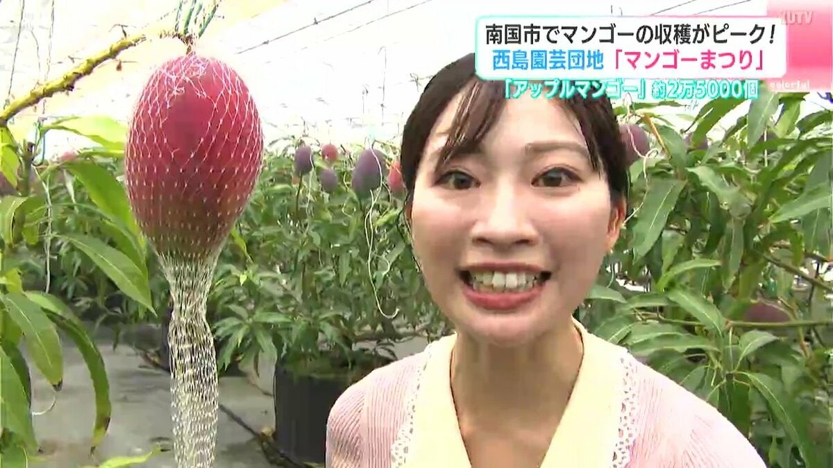南国市の西島園芸団地では5月末から夏の味覚・マンゴーの収穫が始まっています。6月末にかけて収穫のピークを迎えるマンゴーは今がまさに旬。ビニールハウスのなかではおよそ2万5000個のマンゴーが育てられています。
