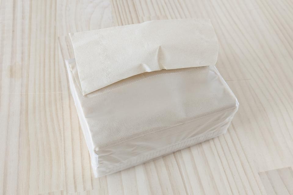 一般的なビニール包装のティッシュは、減ってくるとビニールがくしゃっとつぶれてしまい、取り出しづらくなってしまうのが気になっていた。