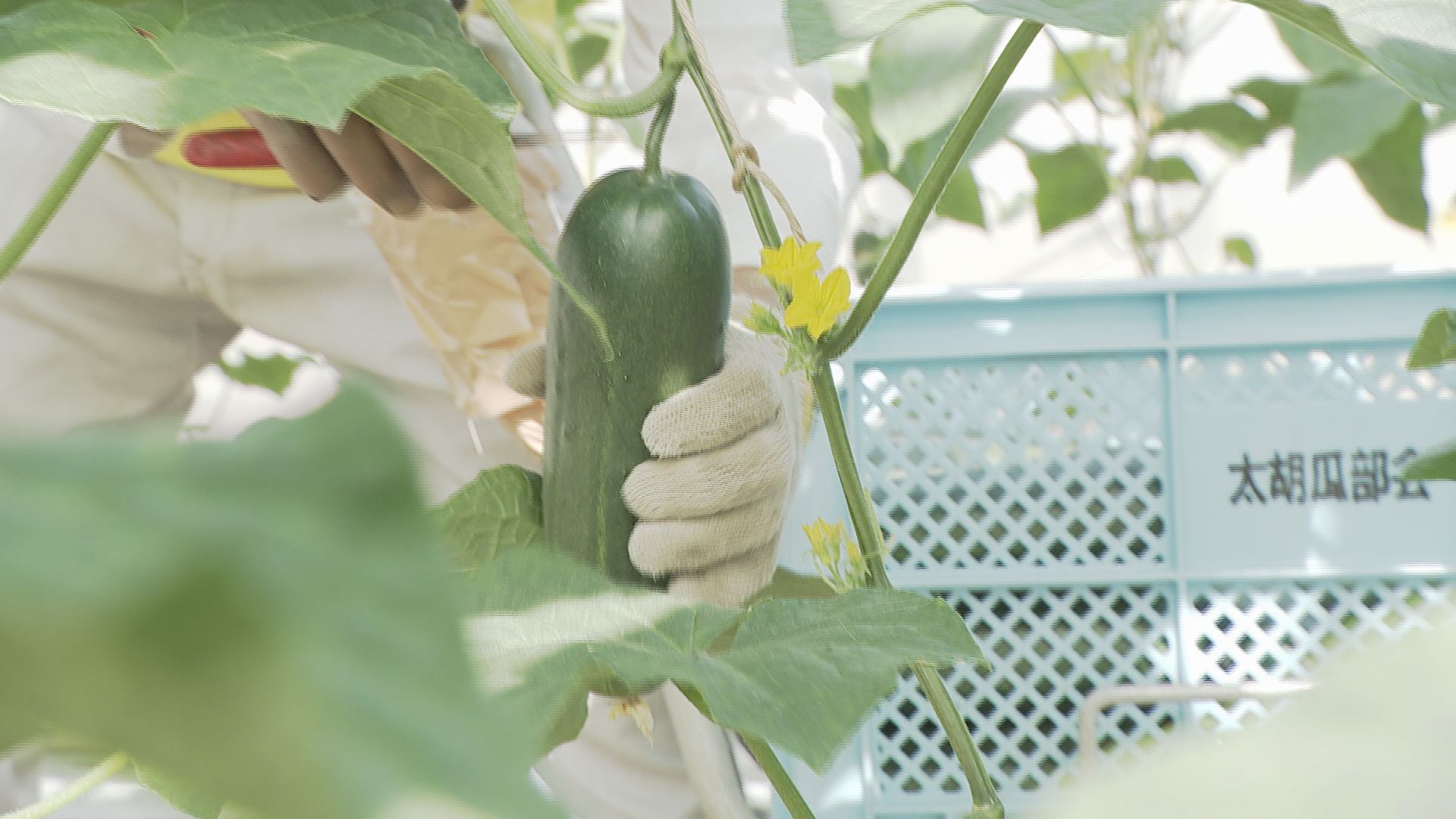 金沢市打木町のビニールハウスでは、14日午後からの初出荷に向けて生産者が丸々と太った加賀太きゅうりを一本一本丁寧に収穫していきました。