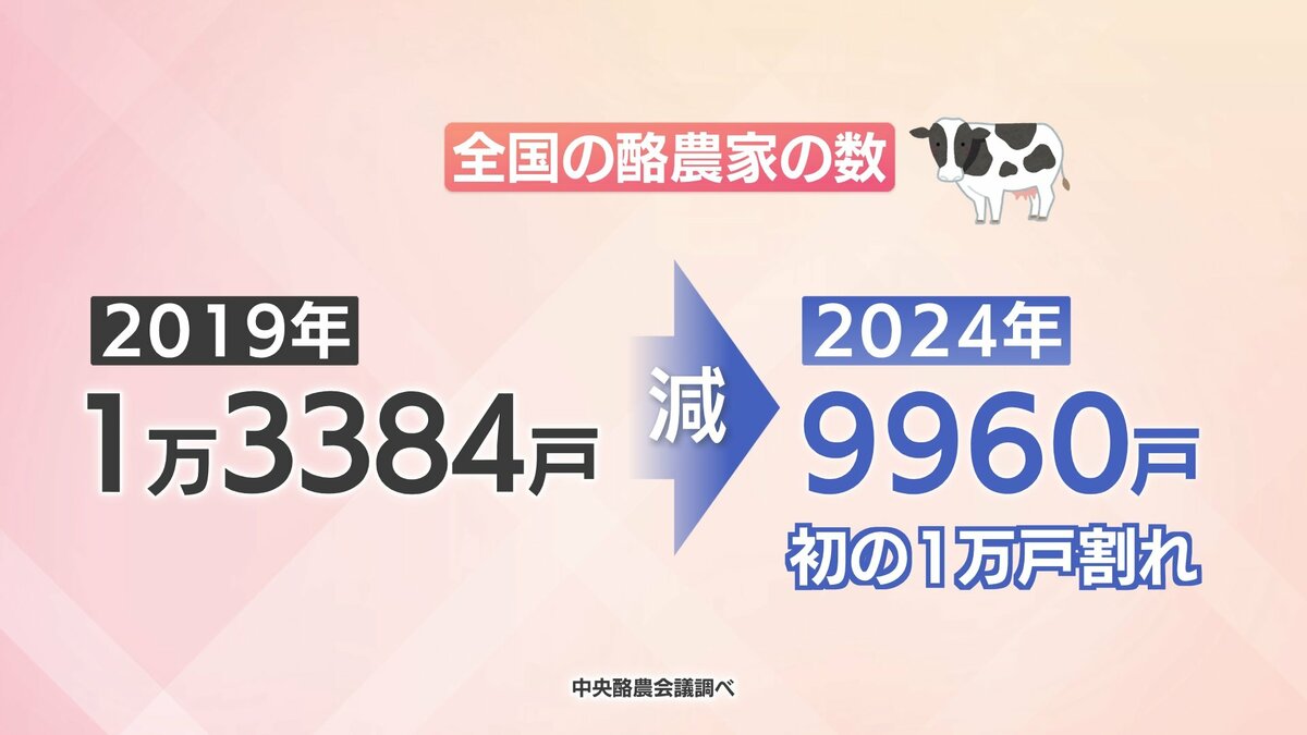 中央酪農会議によりますと、全国の酪農家の戸数は年々減少し、去年10月時点で9960戸と5年間で3000戸以上減少。