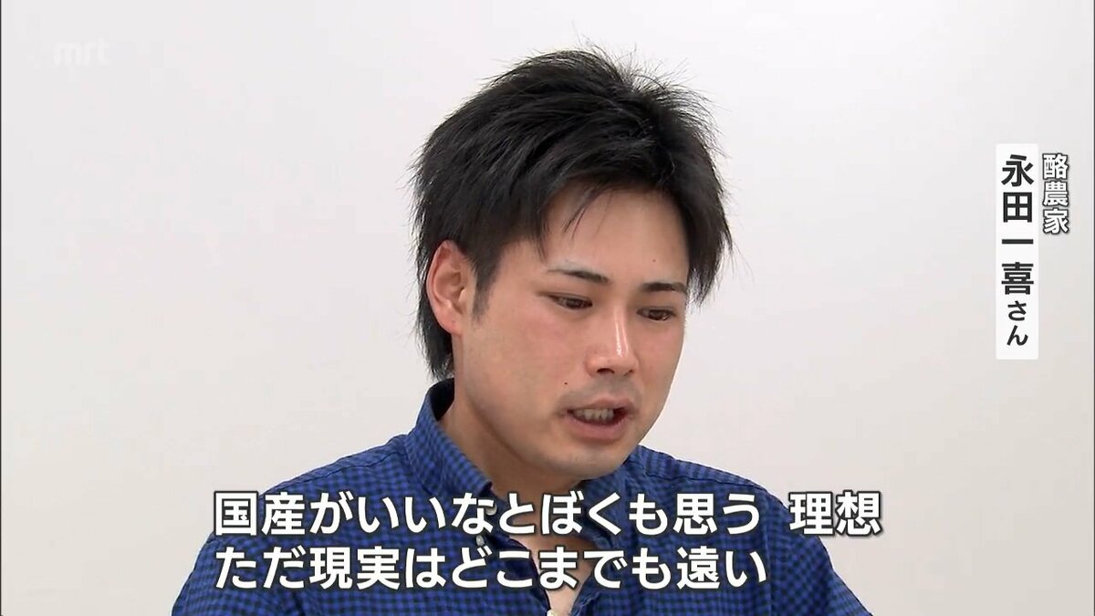 「国産がいいなと僕も思います。理想です。ただ、現実はどこまでも遠い。そこに行くまでに、今、、種代も上がった、肥料代も上がった、トラクターも上がった、機械も老朽化が進んでいる。あとは人が足りないですよね、どう考えても。安定するのは自分らが買うっていう形。だから、国産で買うという形が一番ベストなのかなと思う」