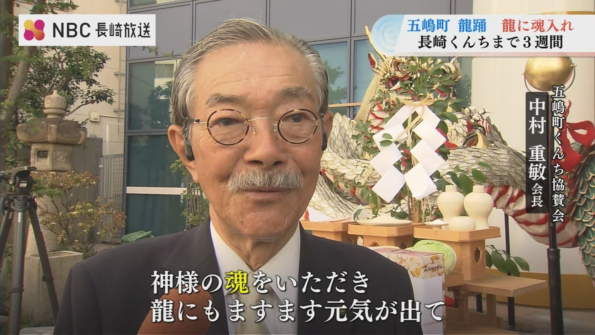 長崎くんち本番を前に、16日、「龍踊」を奉納する五嶋町の龍に魂を入れる神事が行われました。