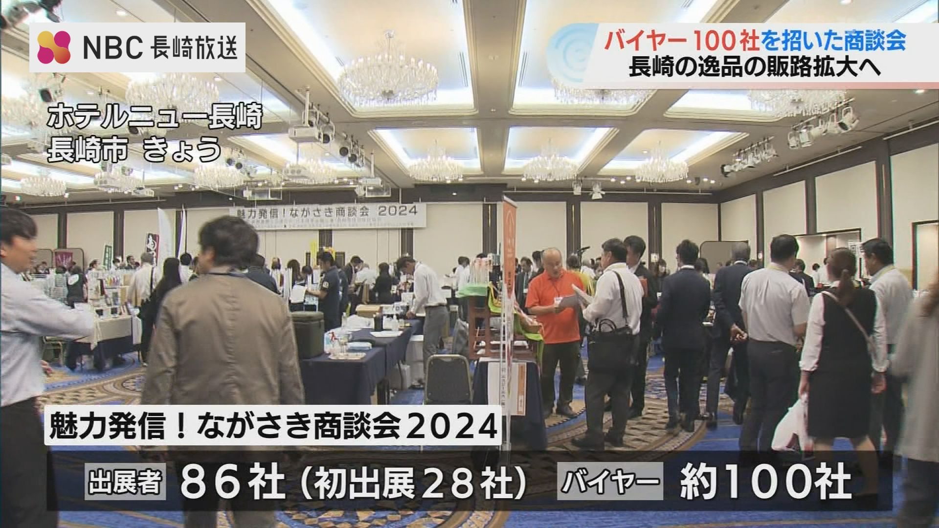 県産品の販路拡大を目指して、県商工会連合会などが13年前から毎年開いている「ながさき商談会」。今年は、初出展28社を含む86社が集まり、自慢の逸品を国内外のバイヤーおよそ100社にアピールしました。