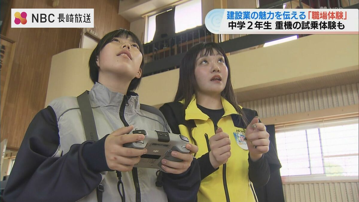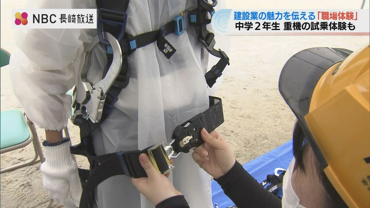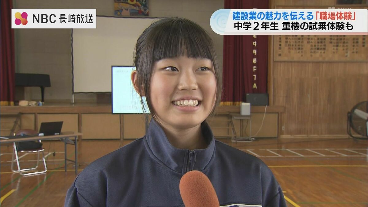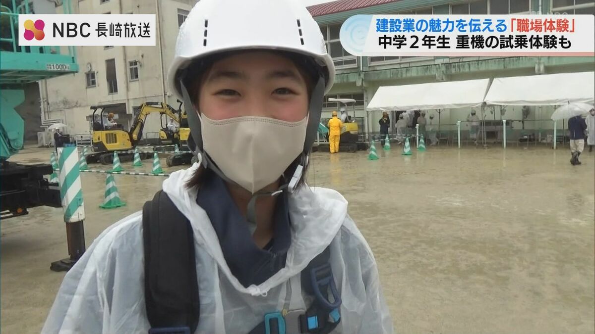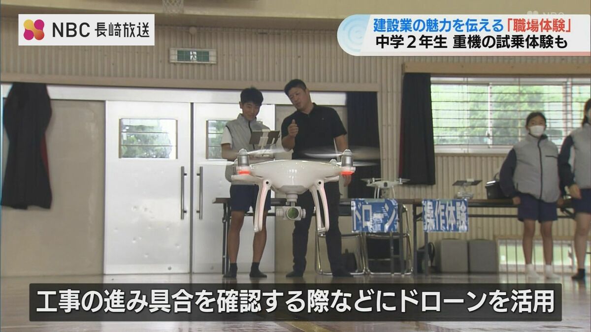 建設業の魅力を中学生に伝える取り組みです。長崎市の滑石中学校で行われた「職場体験学習」生徒たちは建設現場で実際に使用されている重機に試乗しました。