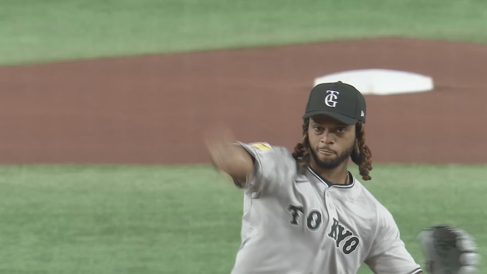 投げたボールは弧を描いて、浦田選手のグラブに収まりました。笑顔でサムアップをしてみせたハムリン選手は観客の拍手に手を上げて応えると、巨人ベンチにも笑顔を向け、マウンドを降りました。