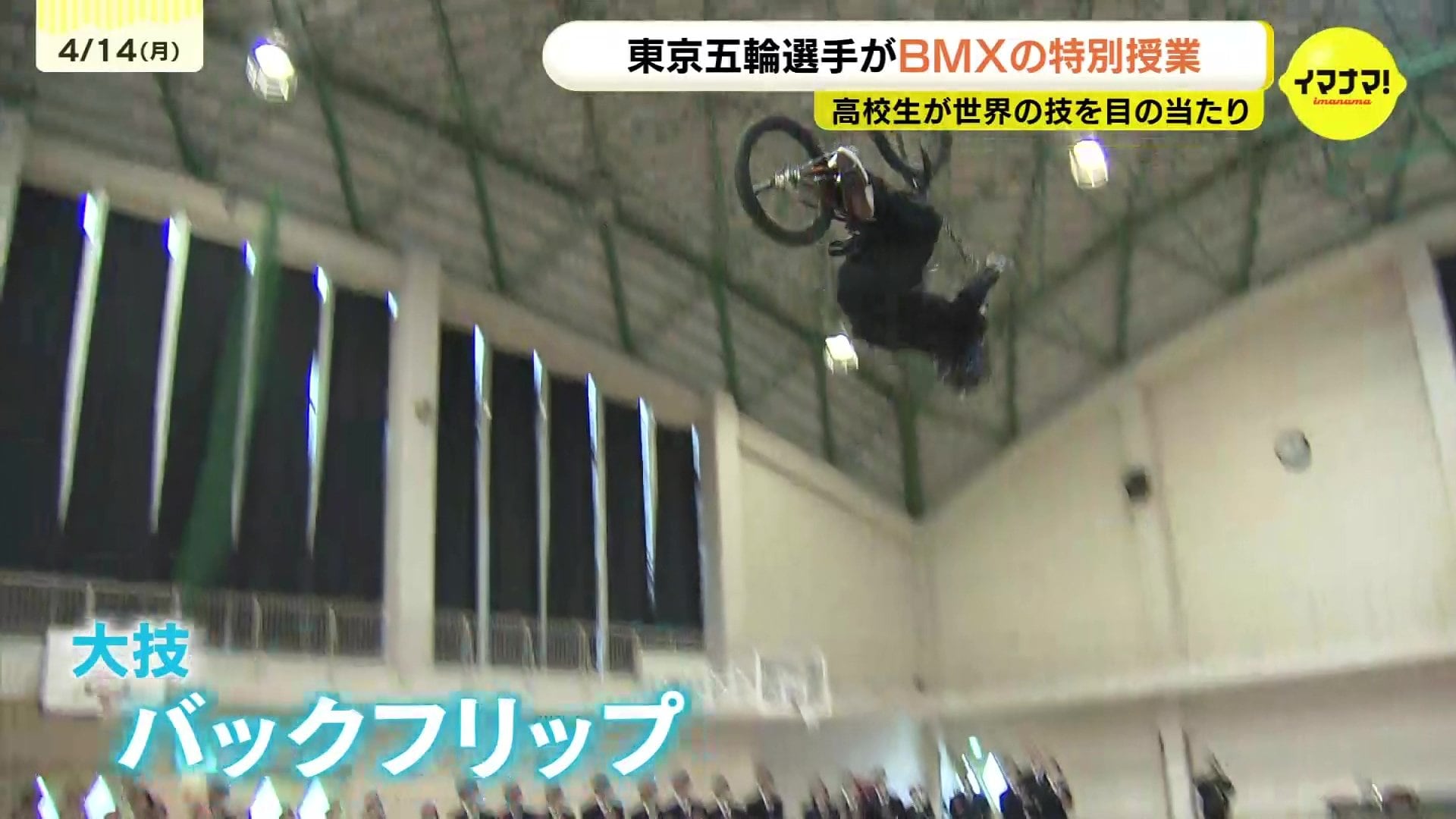 4月14日、広島市立沼田高校で行われたのは「BMXフリースタイル」の特別授業です。この競技は競技用自転車=BMXを使って、技の難易度や組み合わせ、ジャンプの高さなどを競う種目で東京オリンピックで正式種目となりました。
