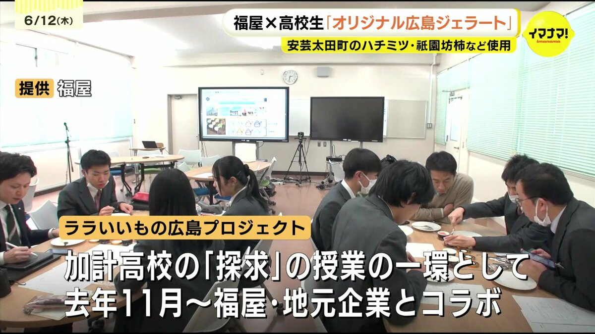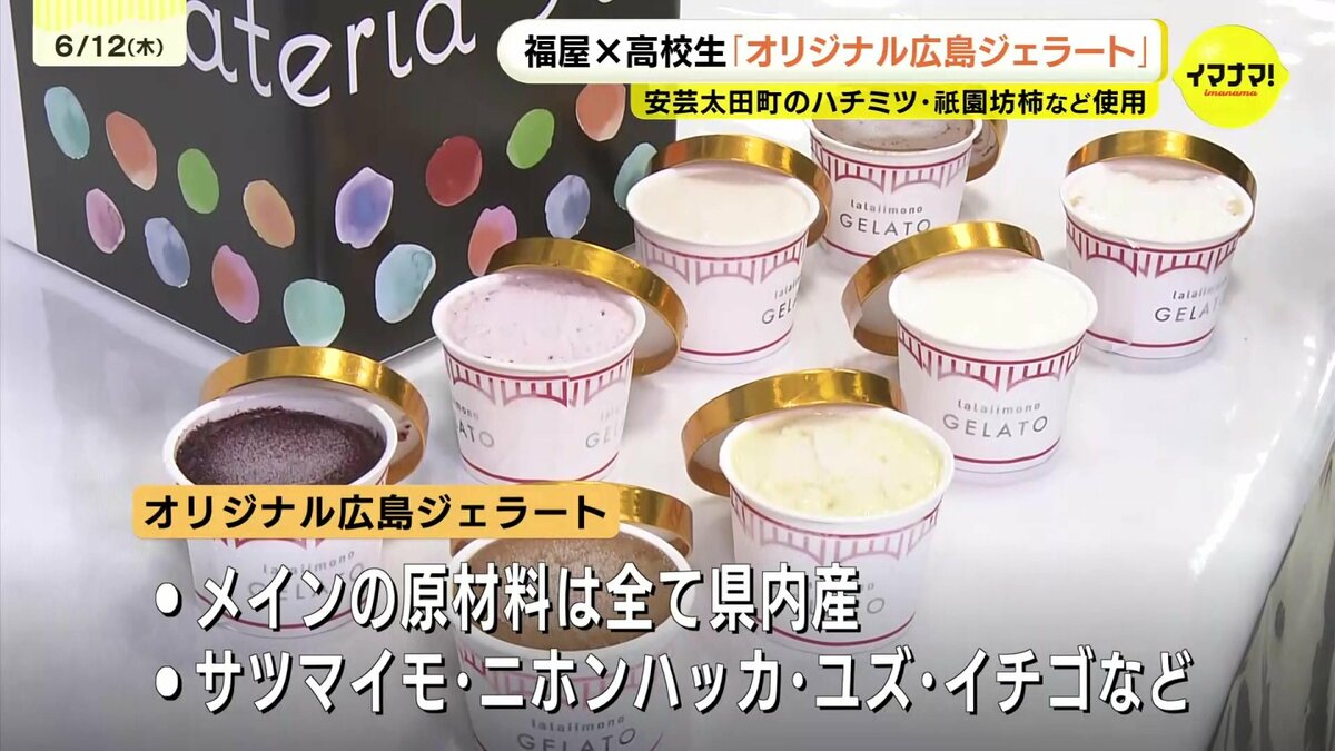 お中元商戦まっただ中ですが、デパートの福屋は初めて高校生とコラボした商品を発売しました。安芸太田町のハチミツや祇園坊柿を使ったジェラートです。