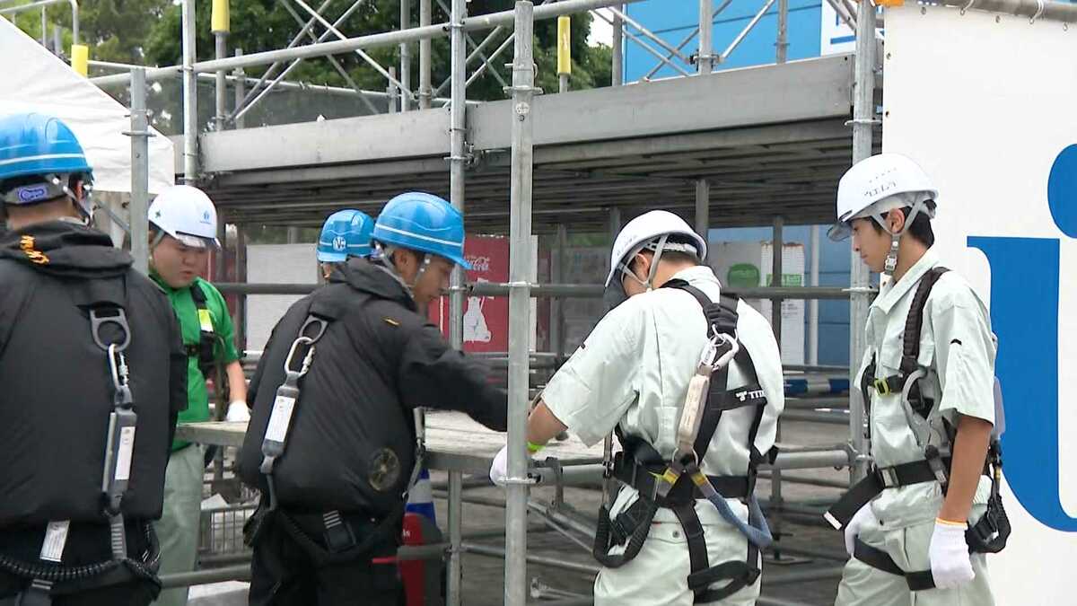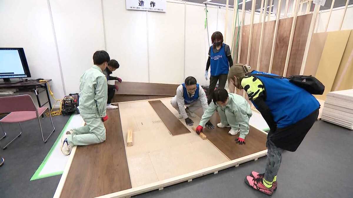 ブースでは、足場の組み立てや建物の設計など建設現場の作業をリアルに体験しました。