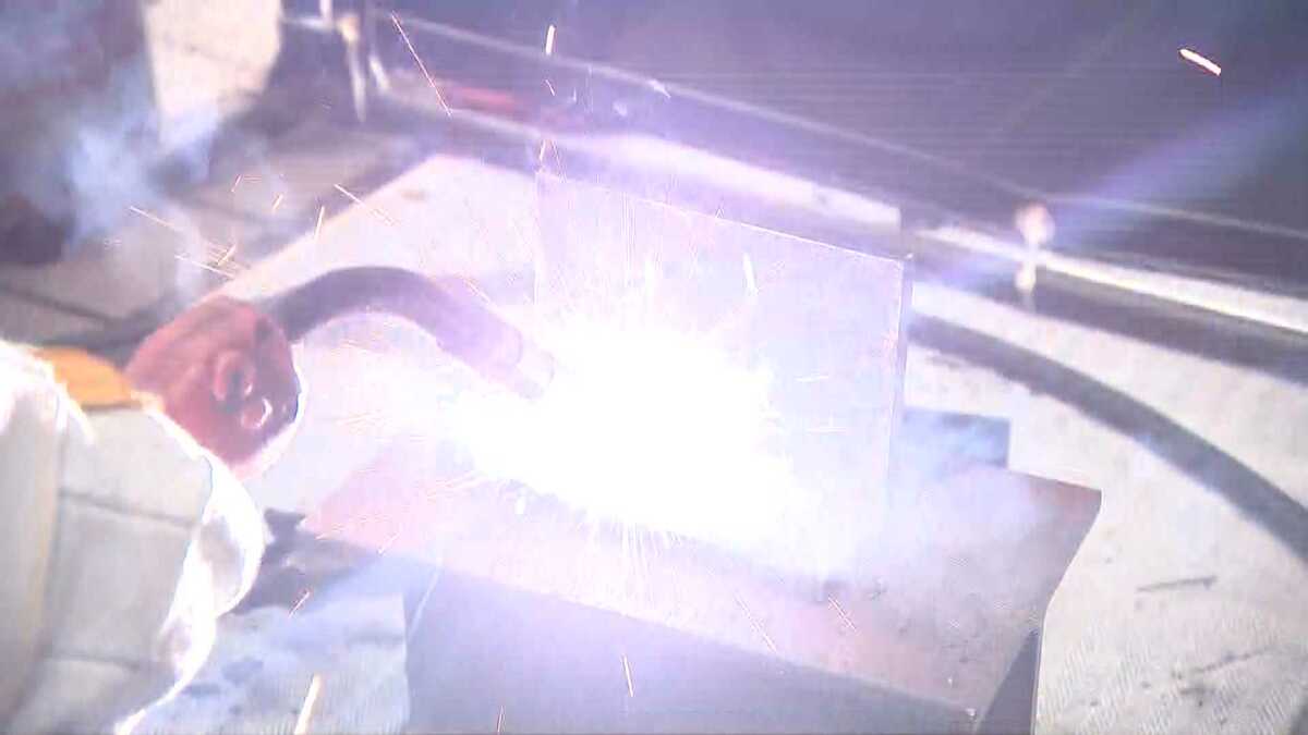 記者も保護具を着用して溶接作業に挑戦させてもらいました。