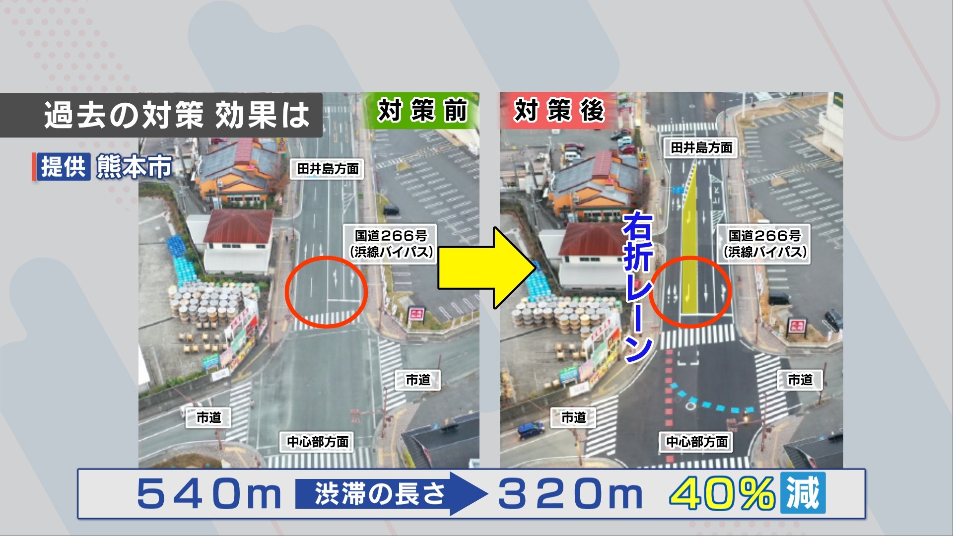 熊本市交通企画課 松尾啓史さん「いま具体的な内容は検討中。車線の引き直しによる“右折レーンの拡大”を想定しています。2025年度(今年度)には取り組みたい」