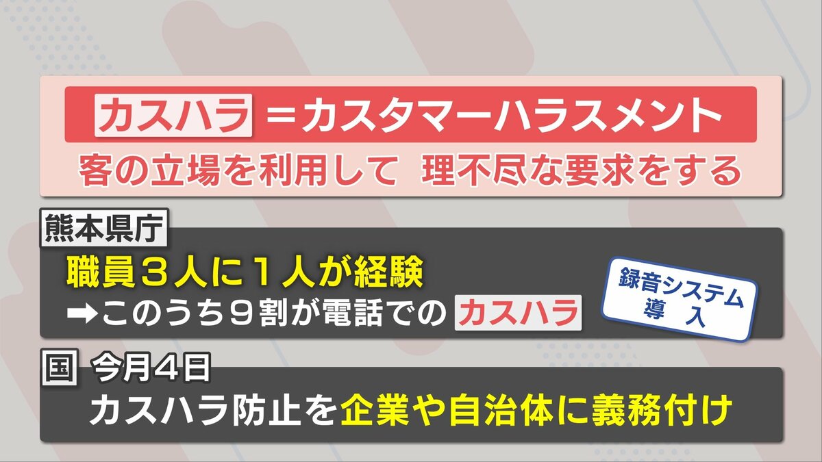 熊本県庁では、「職員の約3割が、過去3年間にカスハラを経験した」とのアンケート結果が出ています。