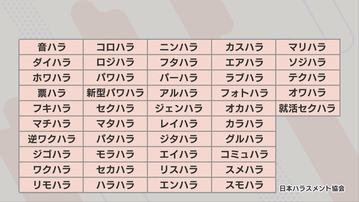 日本ハラスメント協会の村嵜要代表理事によりますと、多くは「パワハラ」「セクハラ」の一種として場面ごとに派生し、種類が増えていったということです。