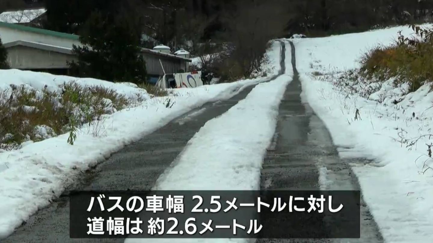警察によりますと、バスの幅は2.5mで、事故現場の市道は幅2.6m。当時、雪が約10cm積もっていました。