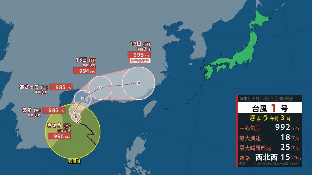 気象庁によりますと、きのう(11日)台風第1号(ウーティップ)が発生したということです。