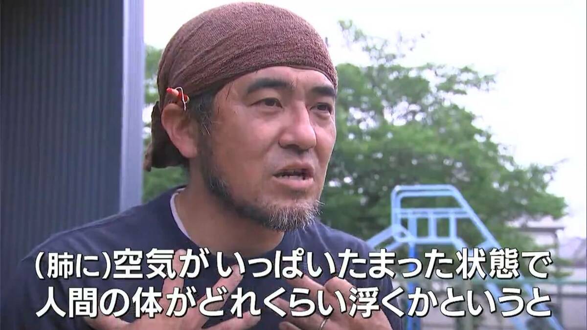 「人間の体ってあまり浮かなくて、空気がいっぱいたまった状態で人間の体がどれくらい浮くかというと、