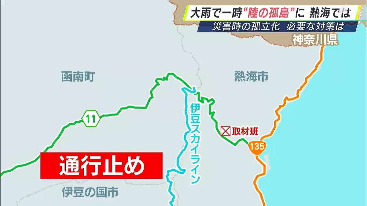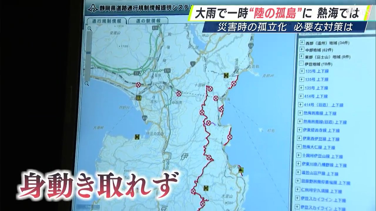 台風10号による記録的な大雨で熱海市では複数の道路が通行止めとなり、一時「陸の孤島」のような状態となりました。