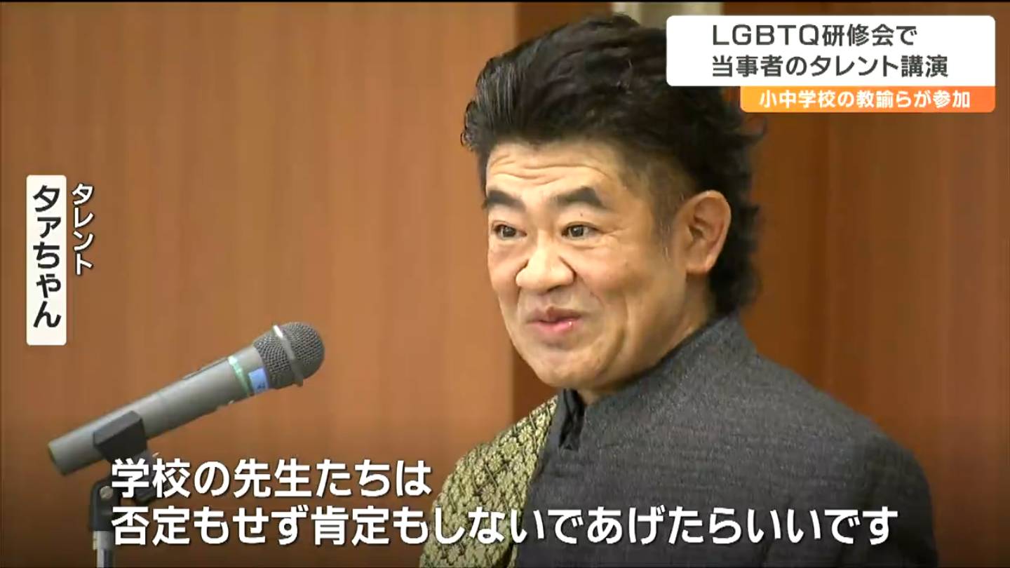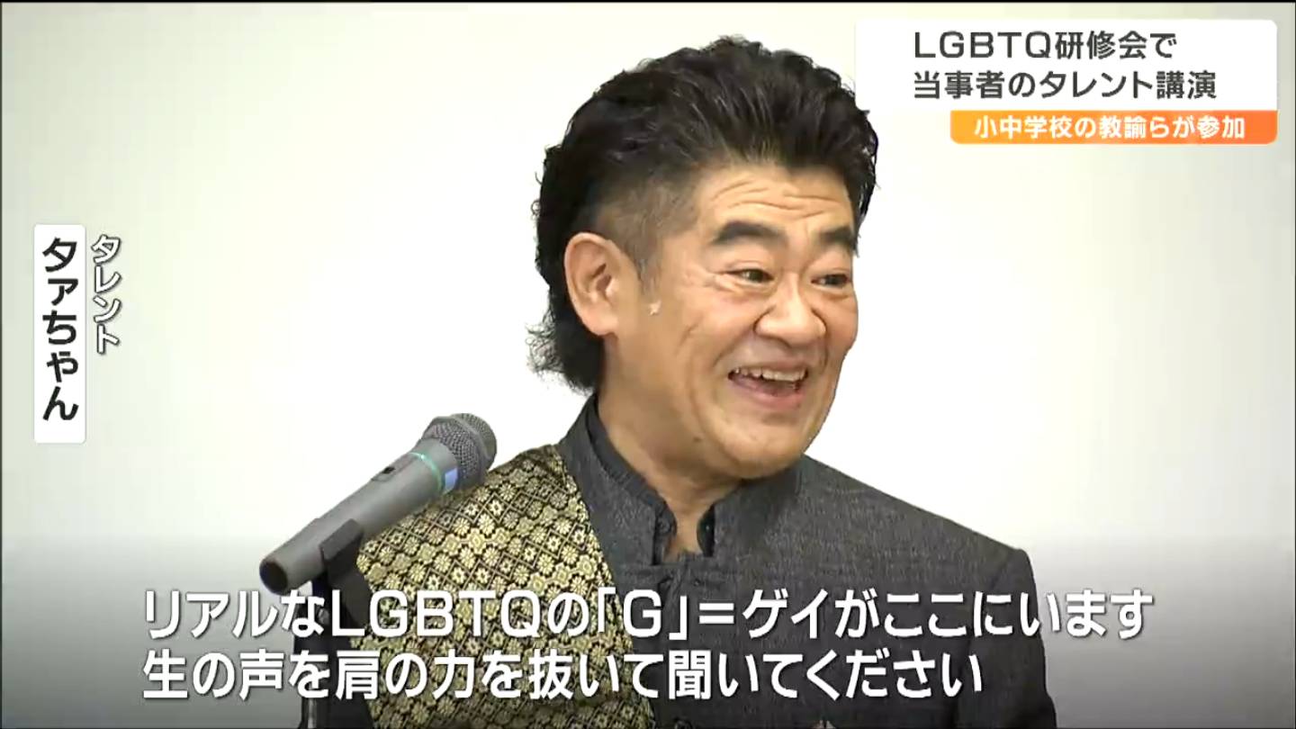 幼い頃からゲイを自認していたという、タレントのタァちゃん。仙台市内の小中学校で保健指導にあたる教諭などおよそ80人が参加した研修会に講師として招かれました。研修会では、自身の経験をもとに性に悩む子どもとの接し方についてアドバイスしました。