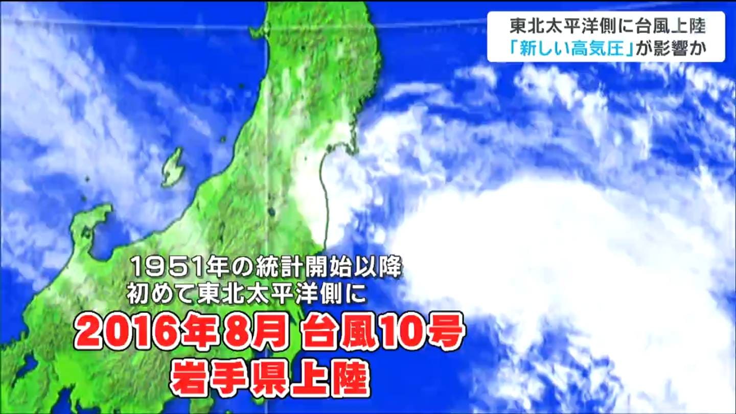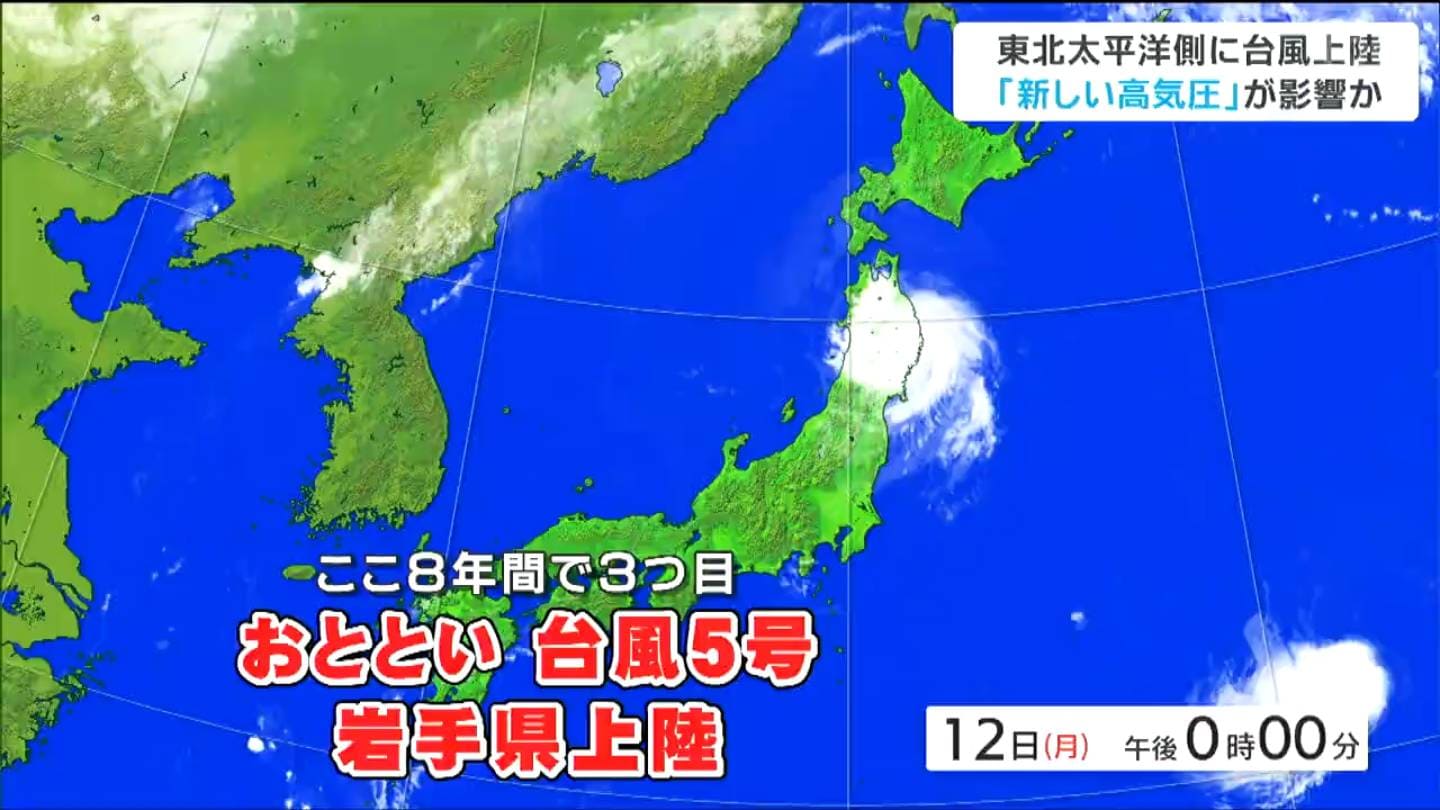 12日、岩手県に台風5号が上陸したことで、東北地方太平洋側に上陸した台風は2016年以降3つ目となりました。専門家は、近年発生している「新しい高気圧」の影響で、台風が東北地方太平洋側に上陸しやすくなっている可能性があると指摘します。