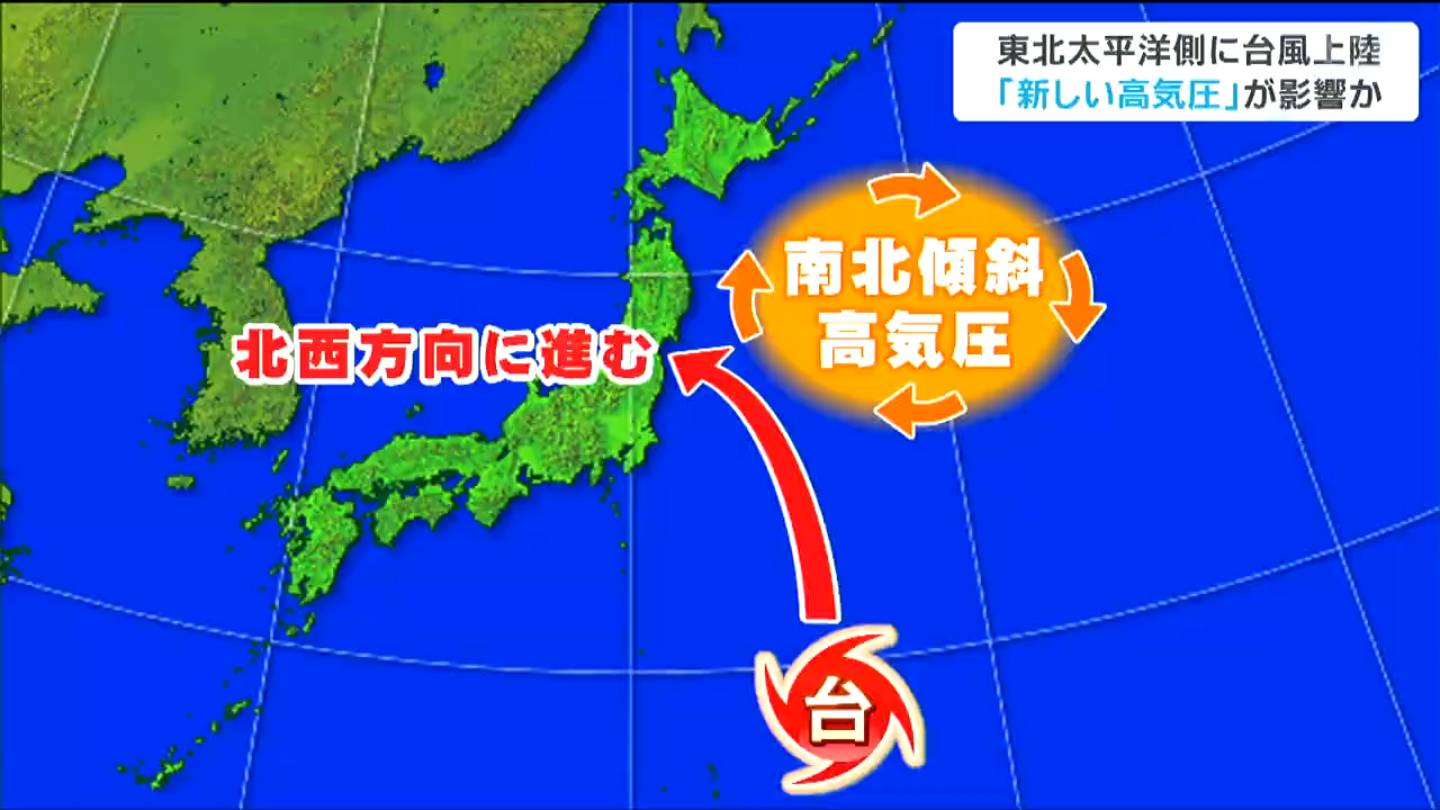「この高気圧があるため、東北地方は風向が南東から北西方向に吹く回数が増えたということなので、そこに乗ってくるような台風が起こるようになった」