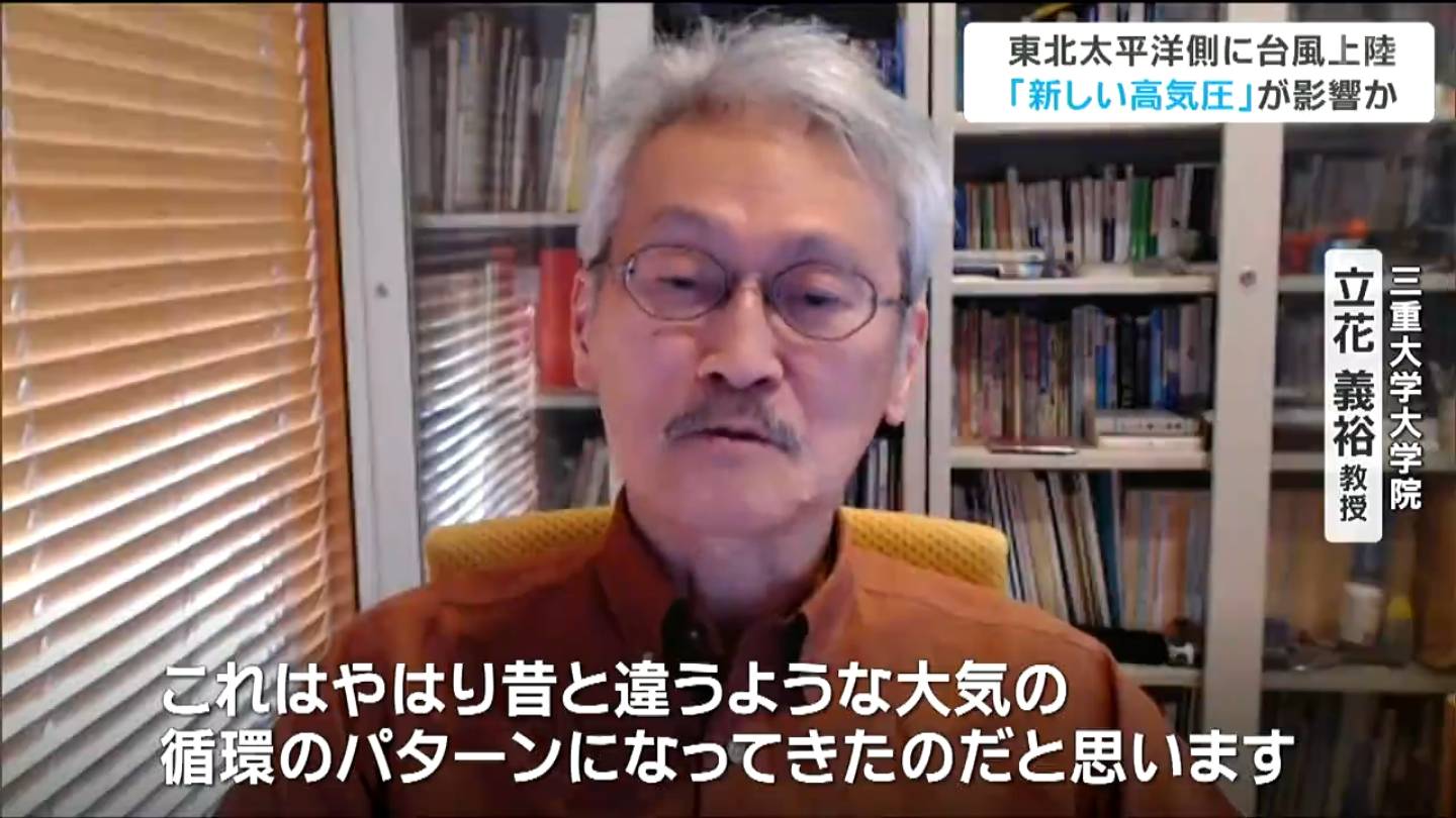 立花教授は、いずれの台風も、接近時に南北傾斜高気圧が発生していたため、東北太平洋側に上陸したと分析しています。