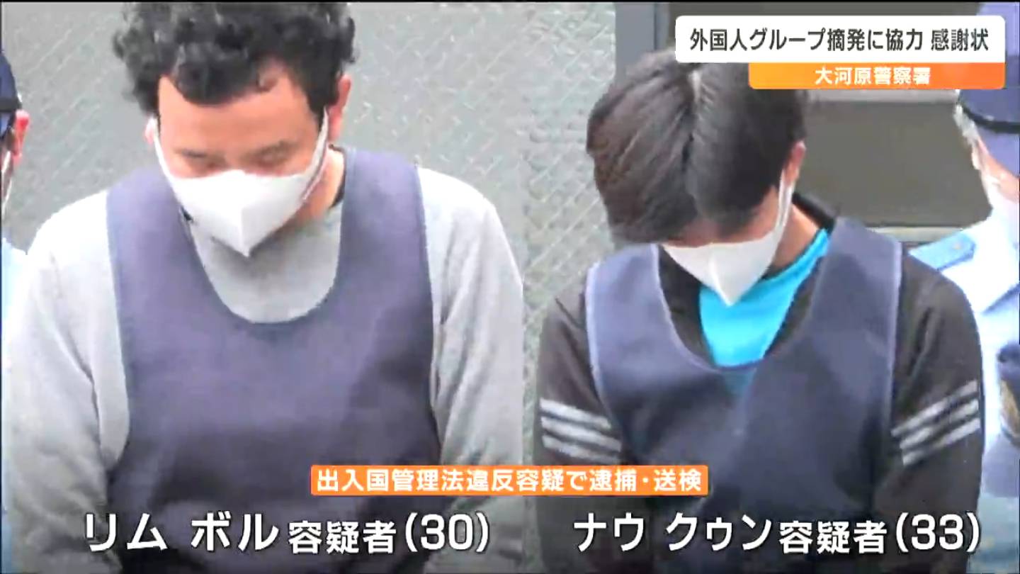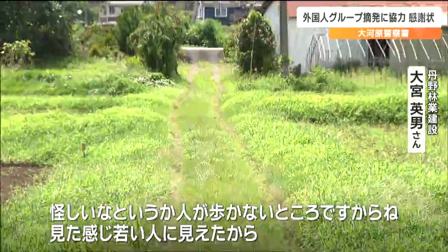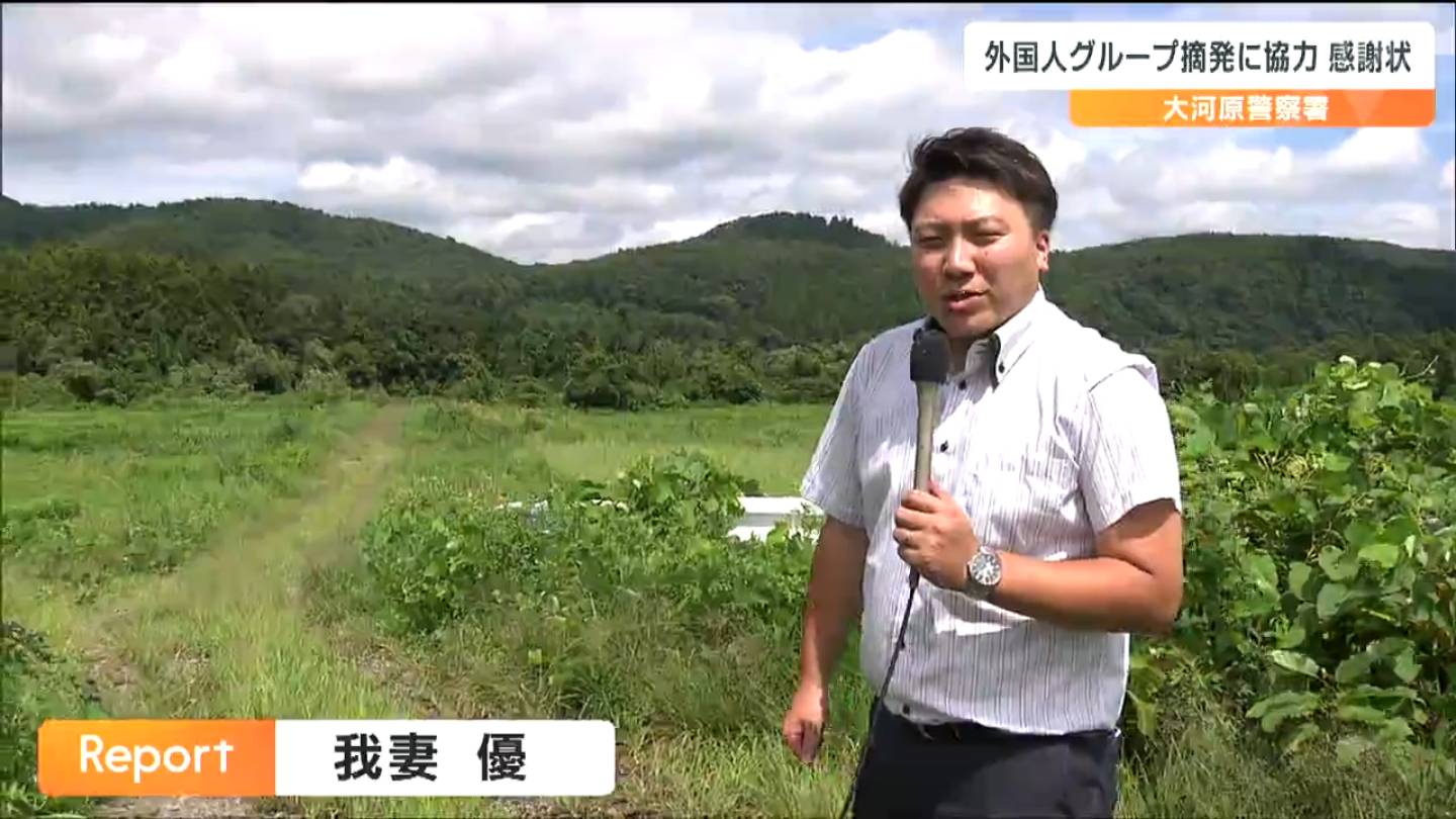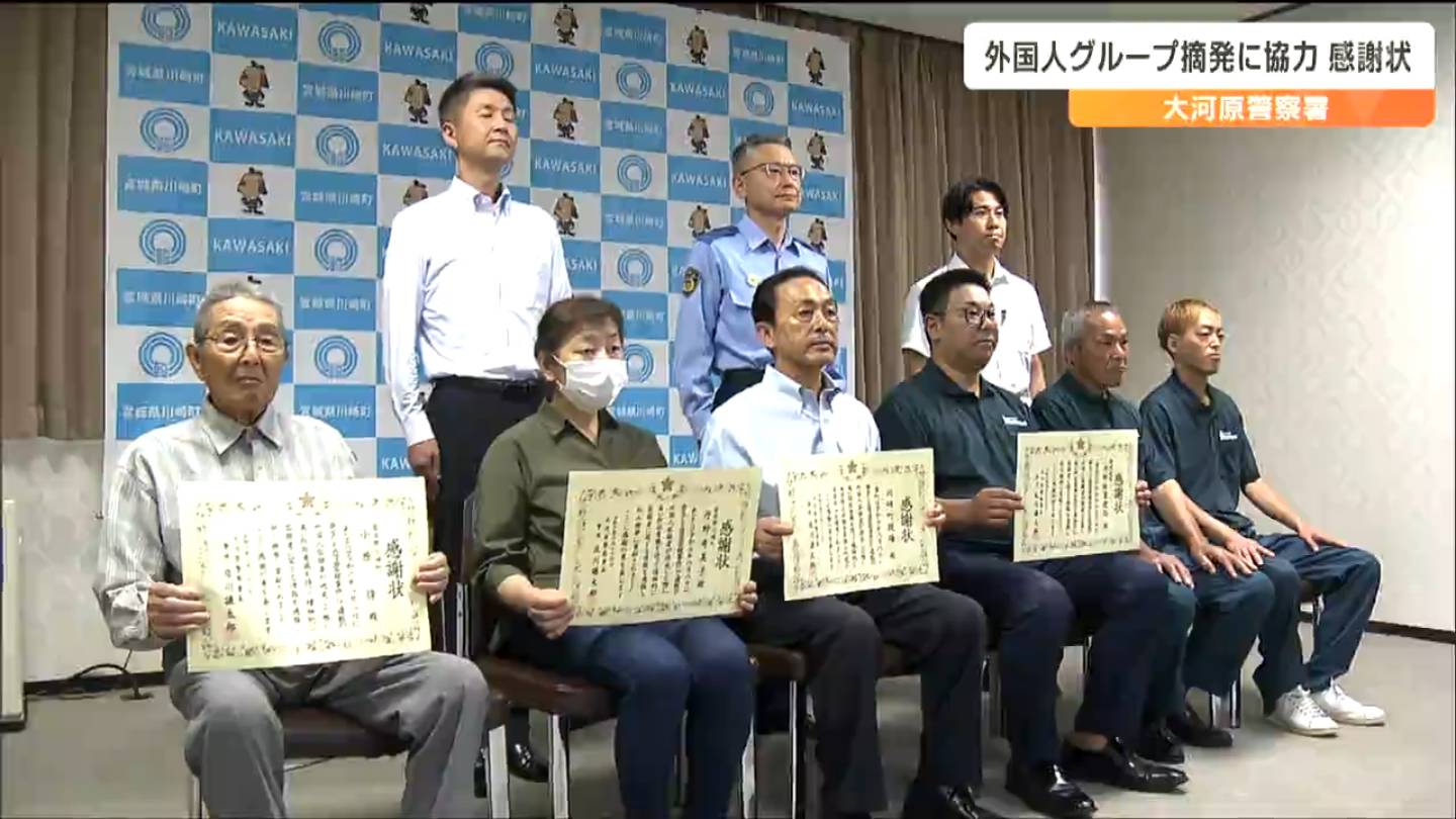 8月8日、宮城県川崎町内で警察車両に乗用車を衝突させて逃走した外国人グループの検挙に協力したとして、地域住民らに感謝状が送られました。