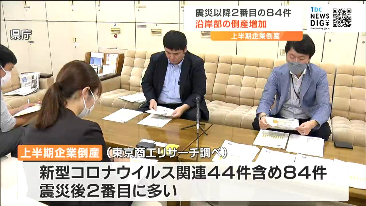 今年度上半期の宮城県内の企業倒産は84件で、東日本大震災発生以降では2番目に多くなりました。負債総額はおよそ121億円、震災からの復興事業が続いていた沿岸部での倒産が増えています。