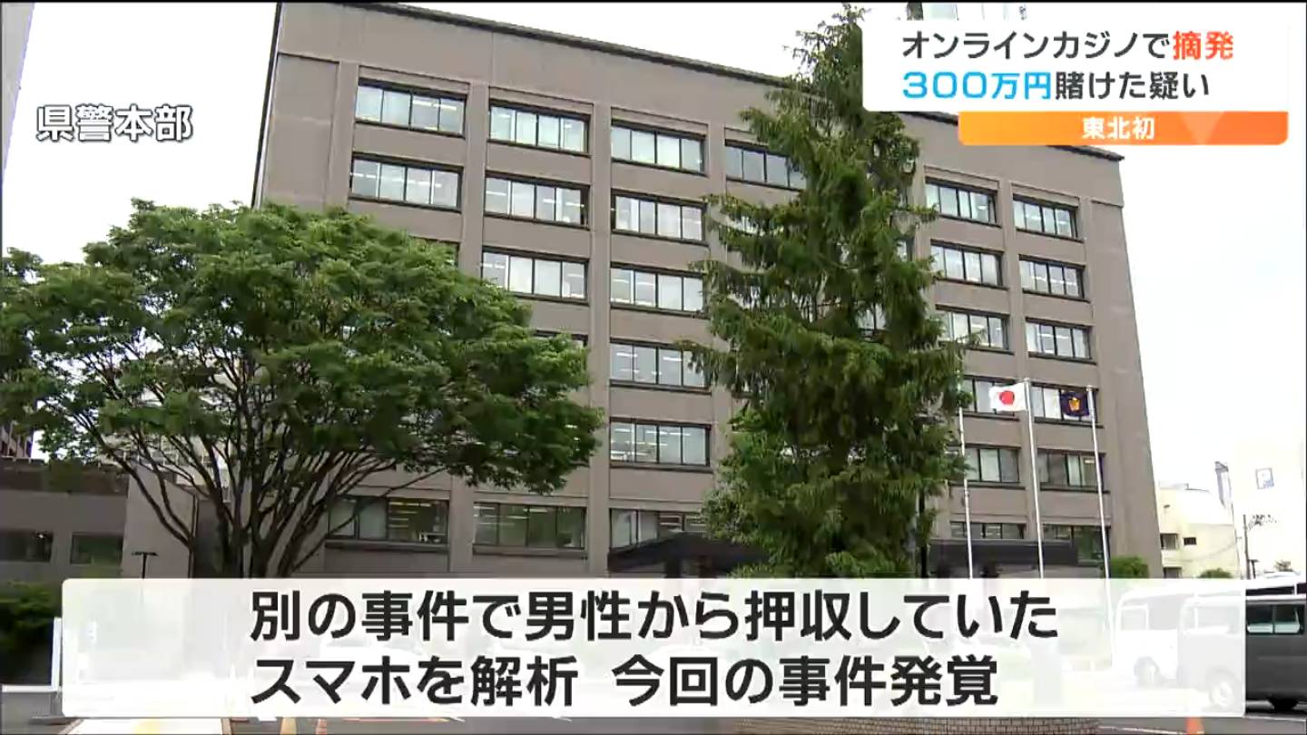 無店舗型オンラインカジノでの賭博容疑での摘発は、東北では初めてです。
