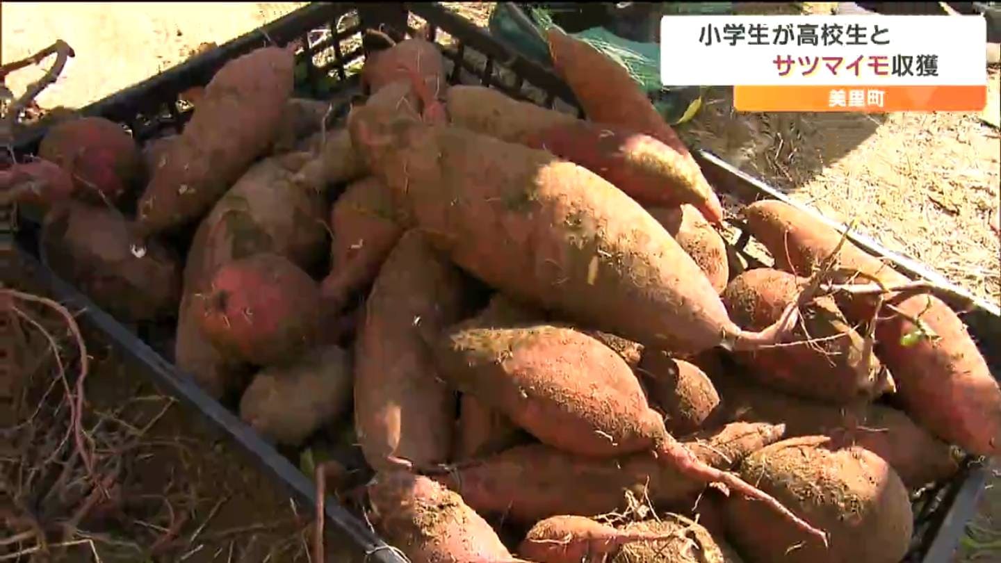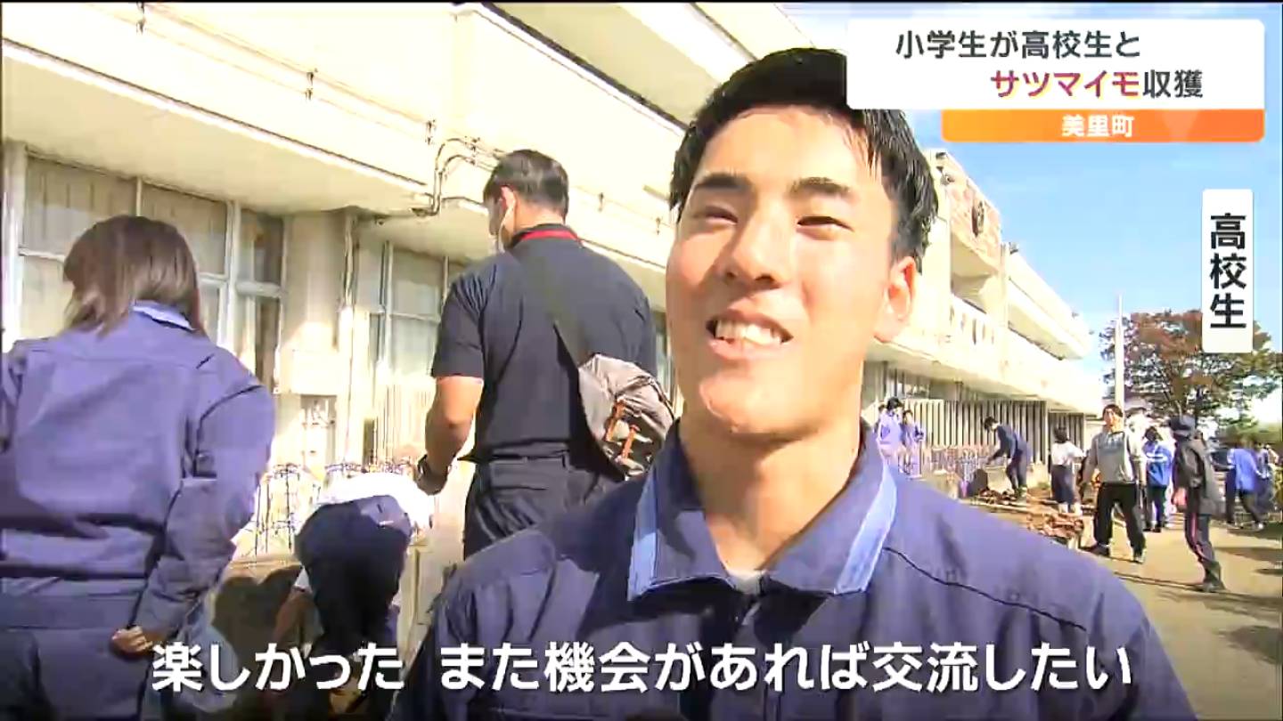 宮城県美里町の小学校で29日、児童たちが地元の高校生らと一緒にサツマイモ掘りを体験しました。