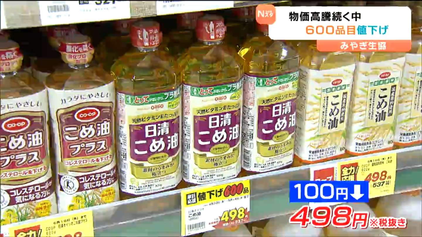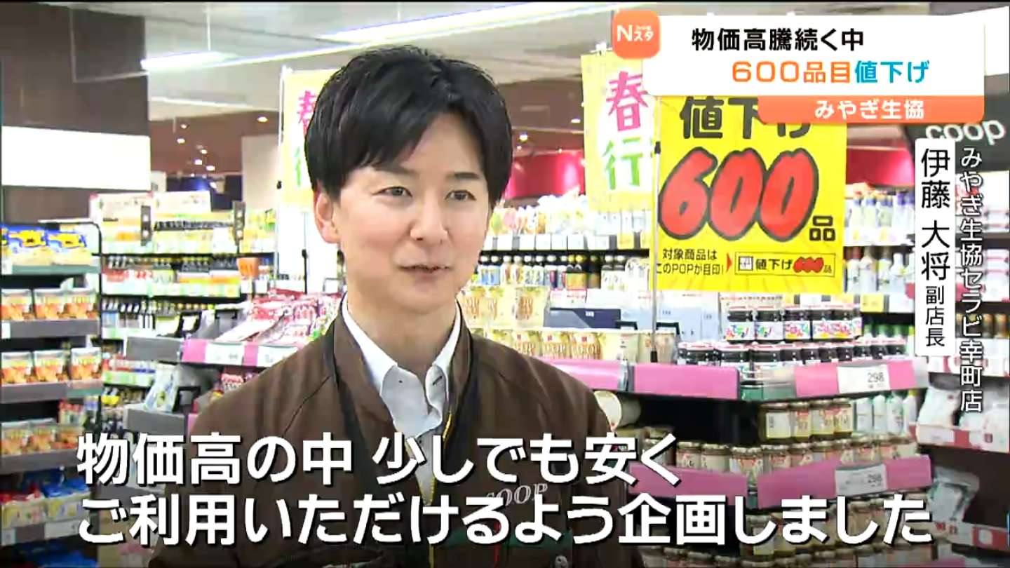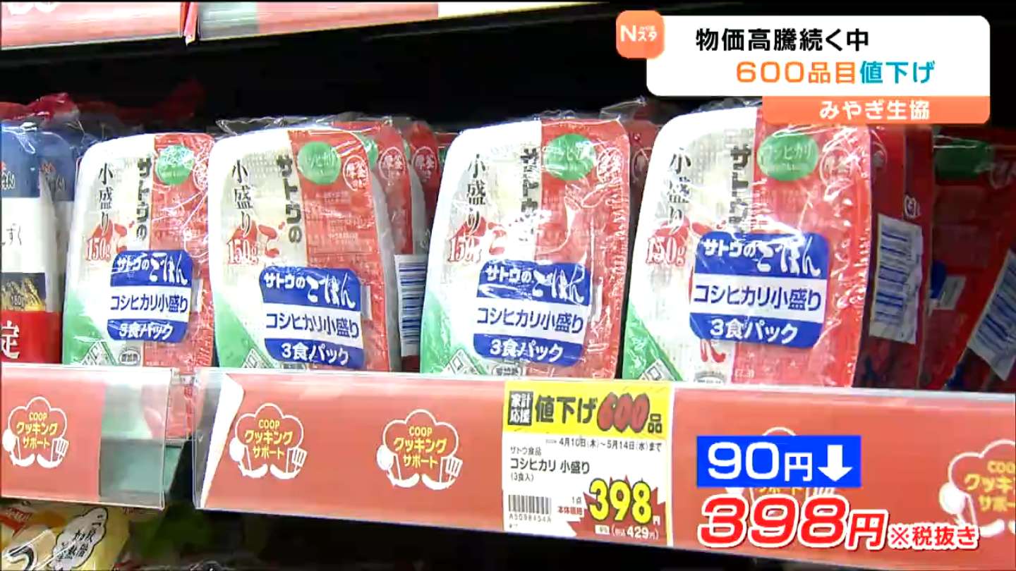 600品目の値下げは、県内の「みやぎ生協」49店舗で5月14日まで実施されます。